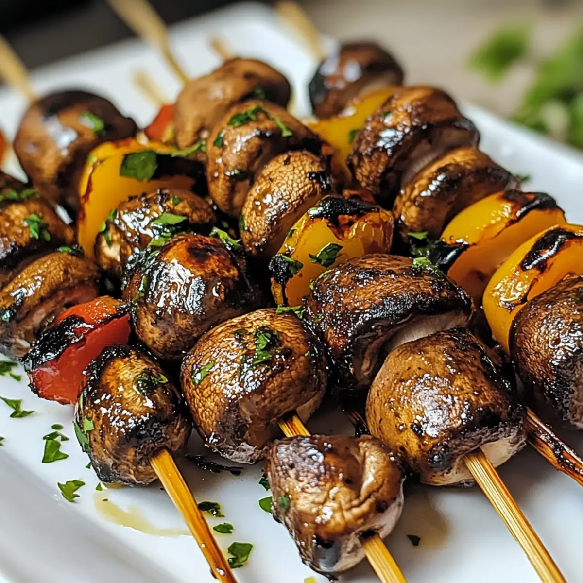 Herzhafte marinierte gegrillte Champignon-Spieße für dein BBQ
