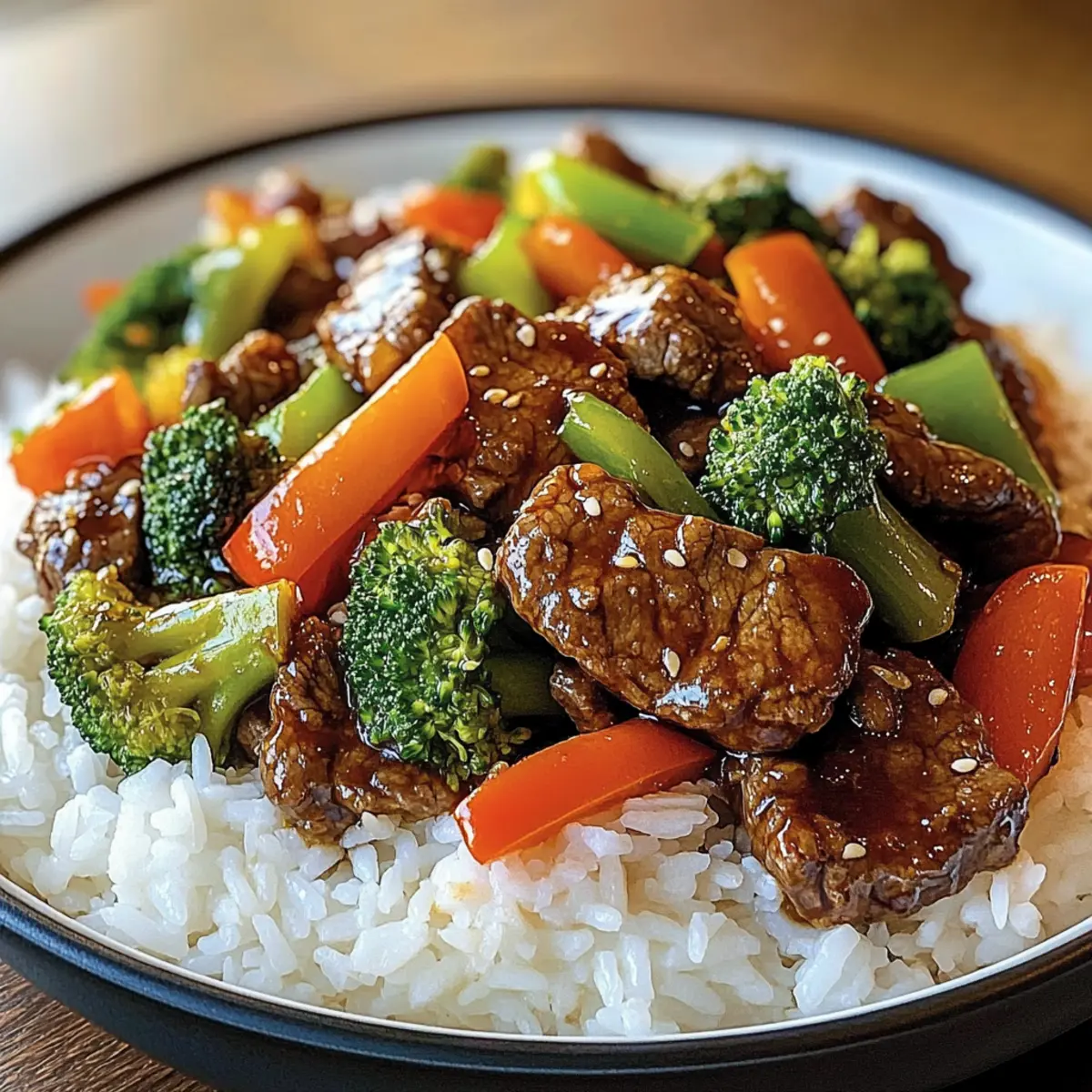 Ein Pfannengericht Teriyaki Rindfleisch mit Reis