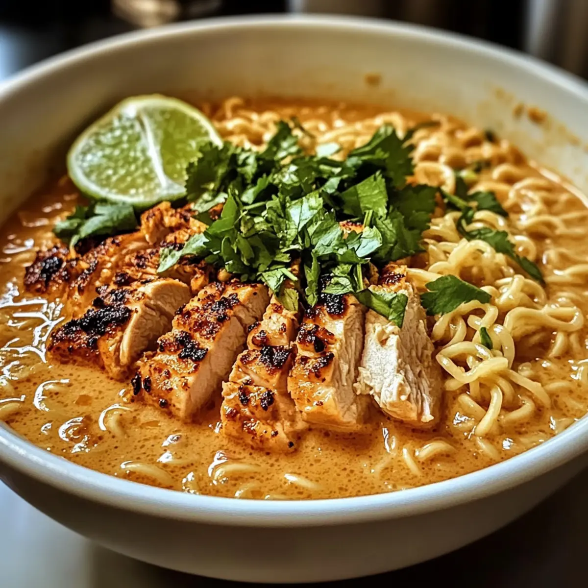 Feurige Hähnchenramen mit cremiger Knoblauchsauce