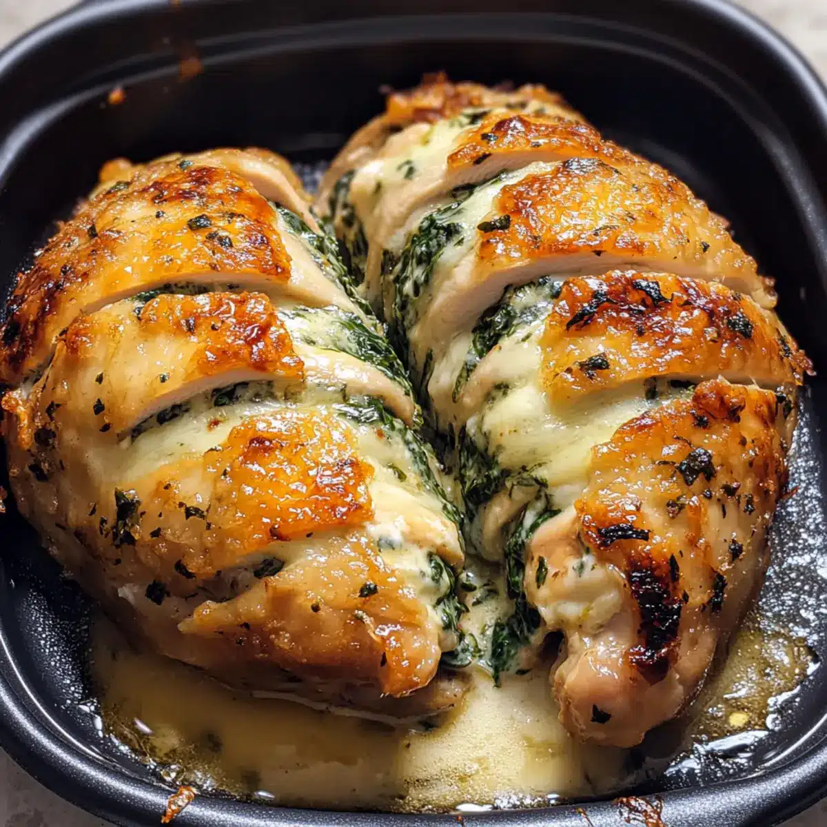 Hasselback Hähnchen mit Spinat und Käse genießen