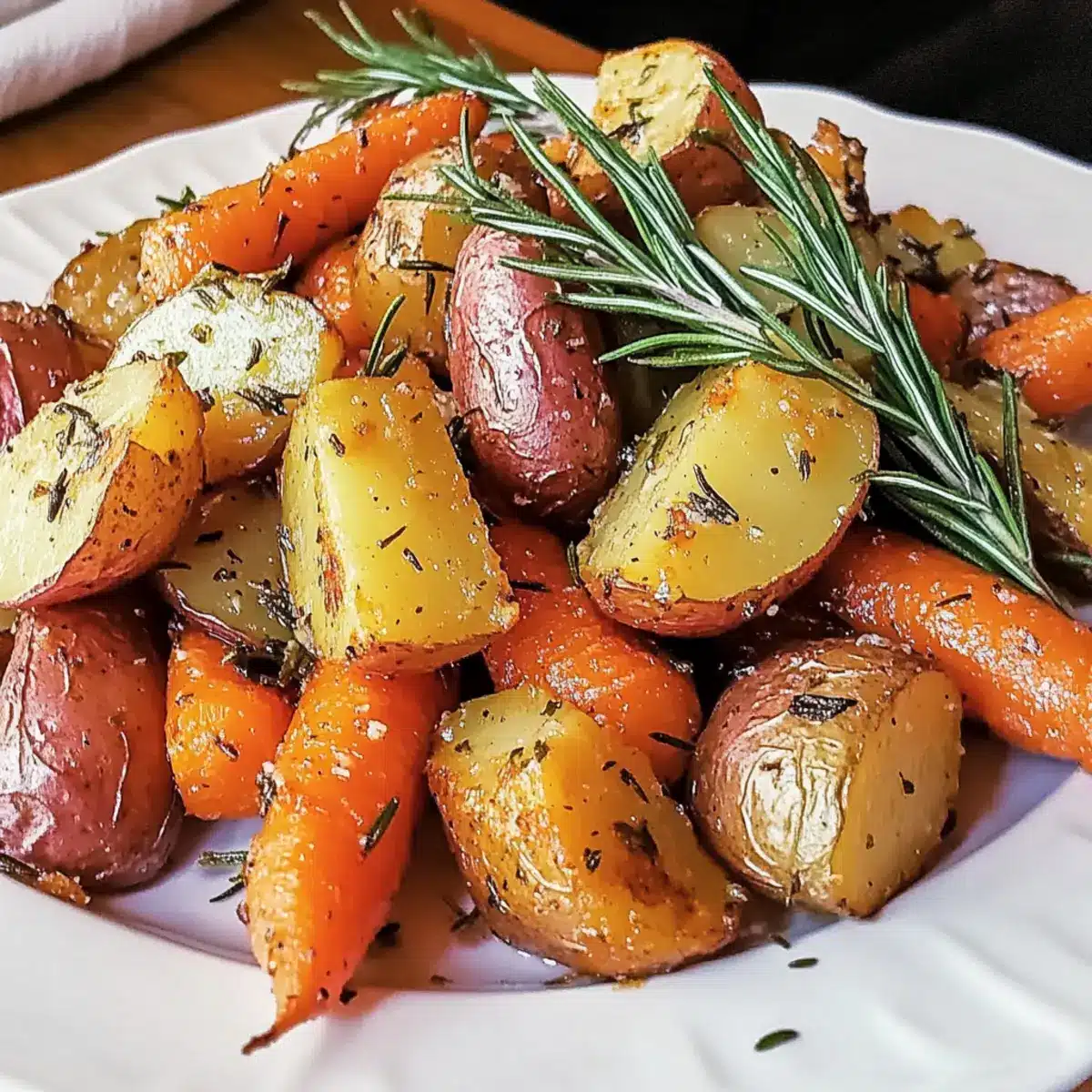 Rosmarin geröstete Karotten und rote Kartoffeln perfekt