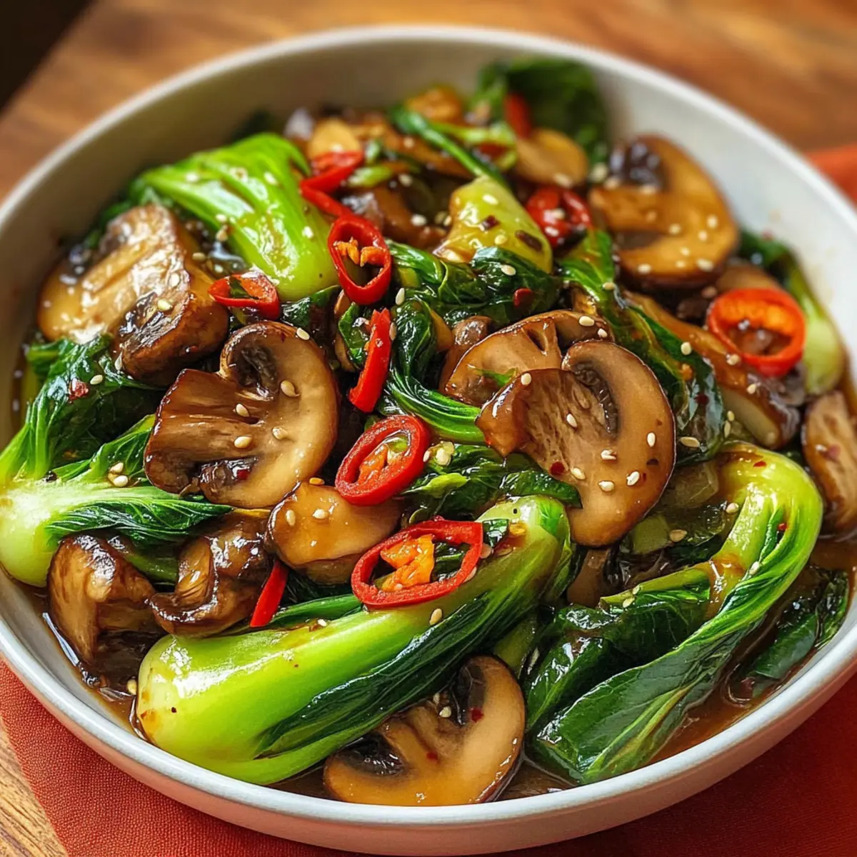 Herzhafter Knoblauch Champignon Bok Choy Pfanne für Eilige
