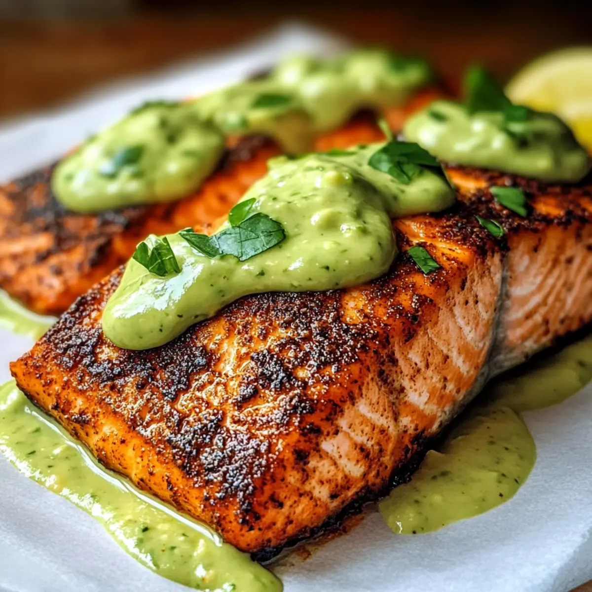 Gebackener Cajun-Lachs mit Avocado-Limetten-Sauce