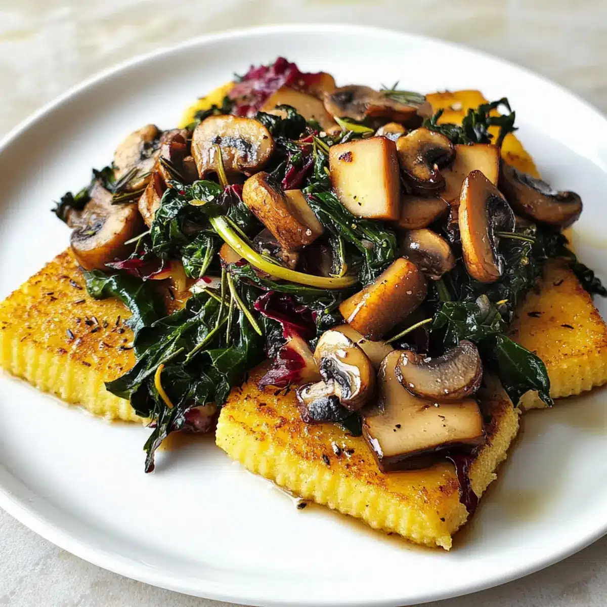 Frittierte Rosmarin-Polenta mit Mangold und Pilzen
