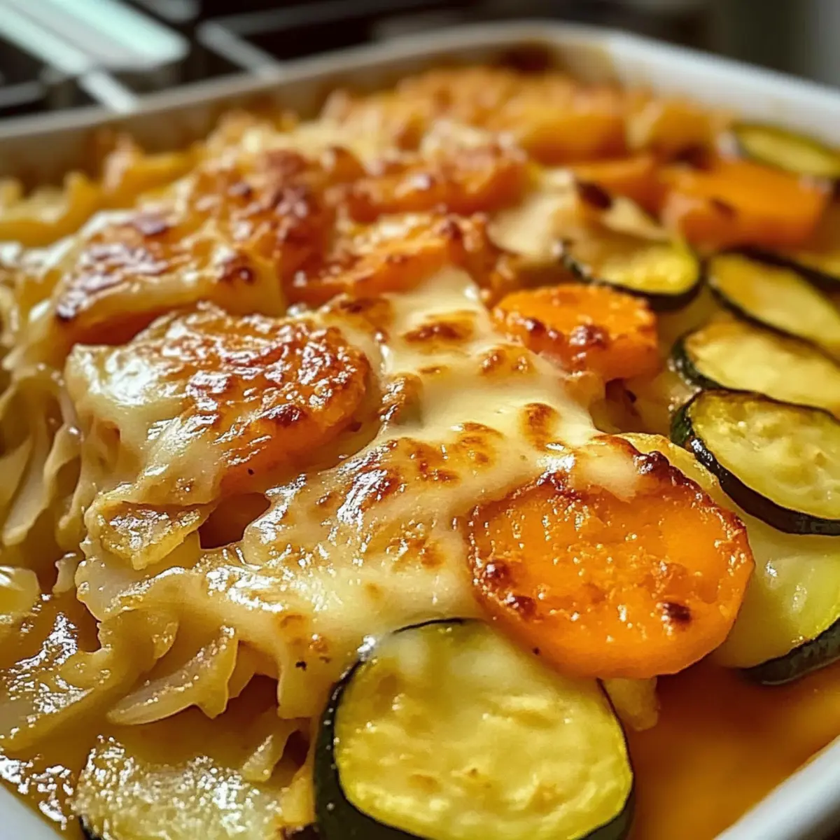 Vegetarischer Kartoffelauflauf mit Zucchini und Karotten