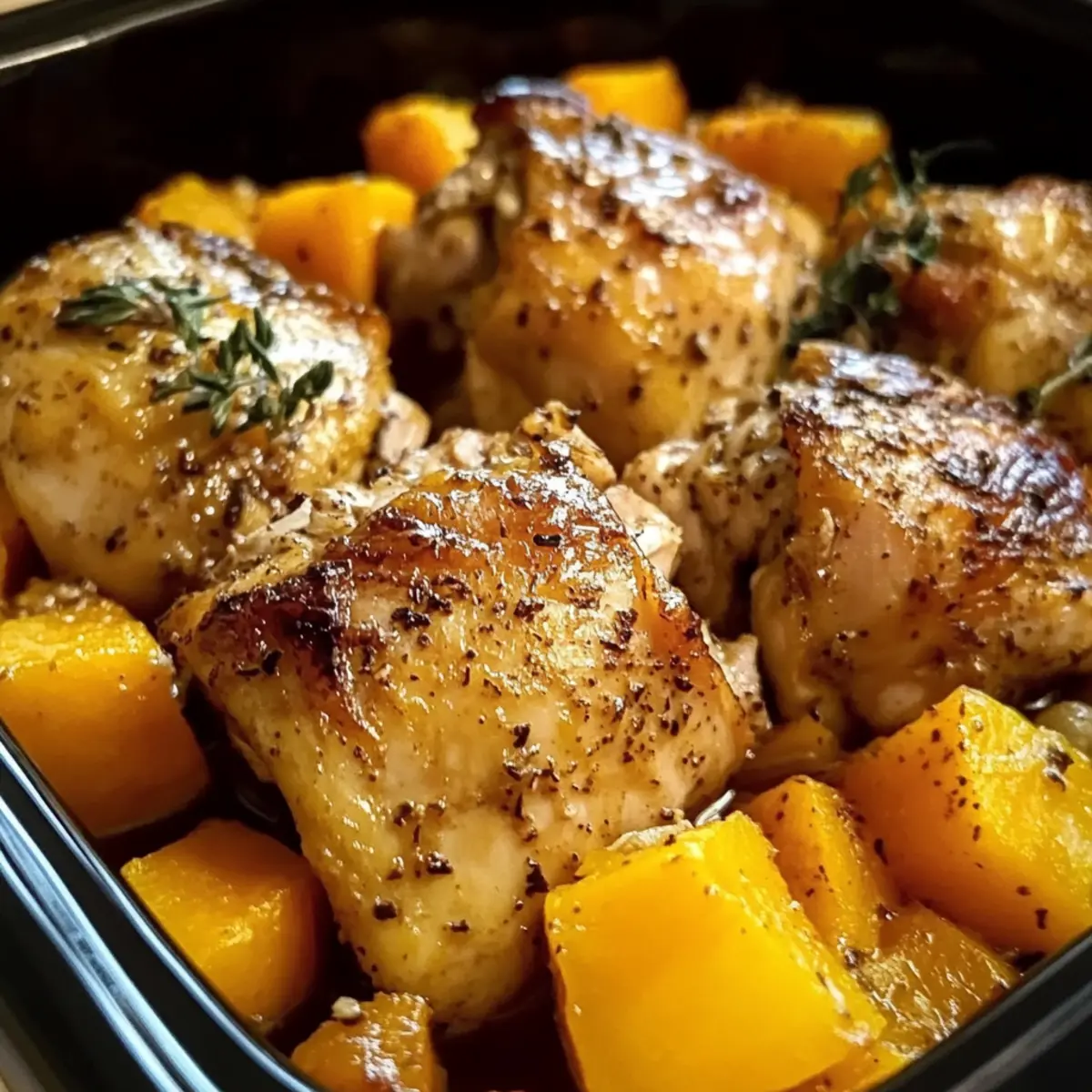 Crockpot Ahorn-Dijon-Hühnchen mit Butternut-Kürbis genießen