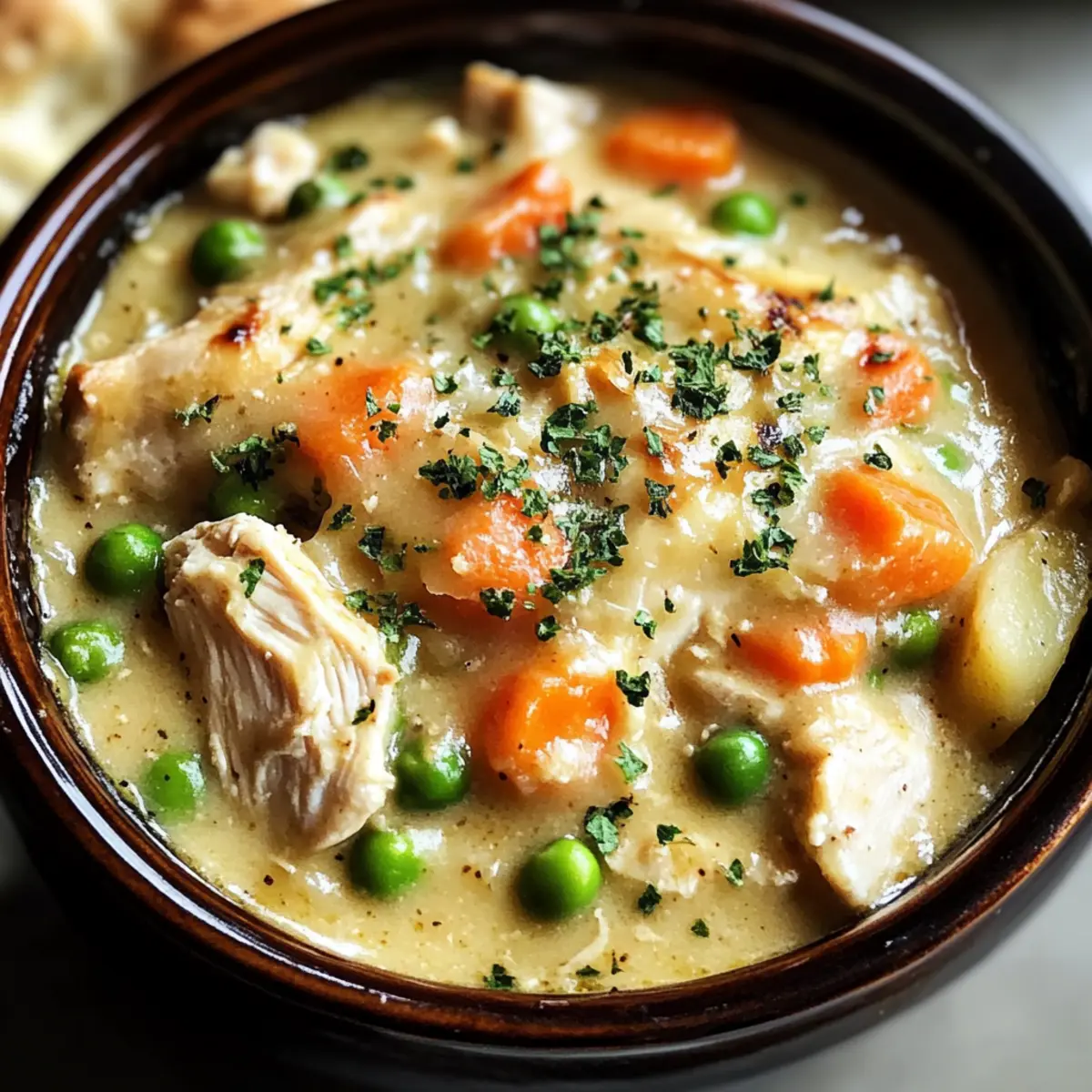 Langsame Kocherei Hähnchen-Potpie für Gemütliche Wintertage