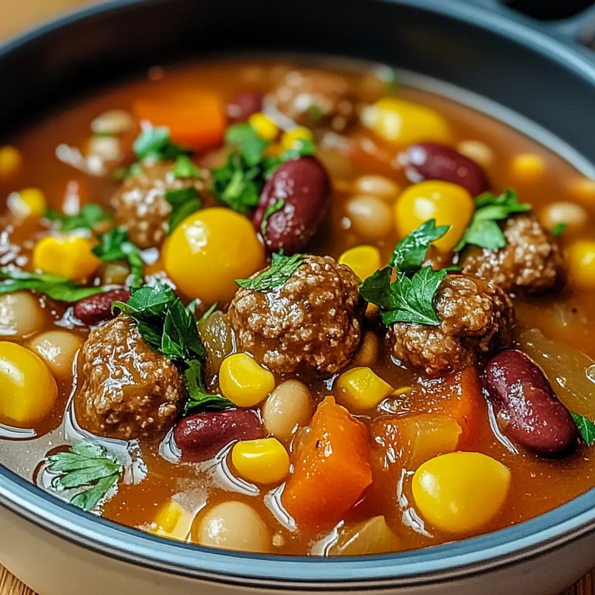 Hackbällchen-Eintopf mit Paprika, Mais und Kidneybohnen