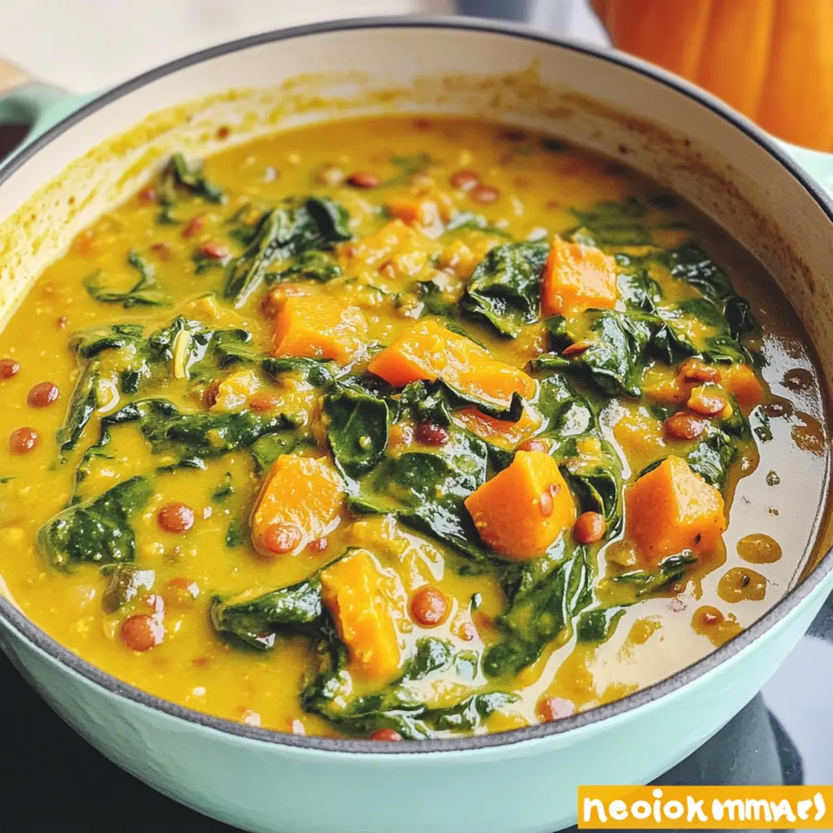 Kürbis Spinat Eintopf mit Linsen für Herbstgenuss