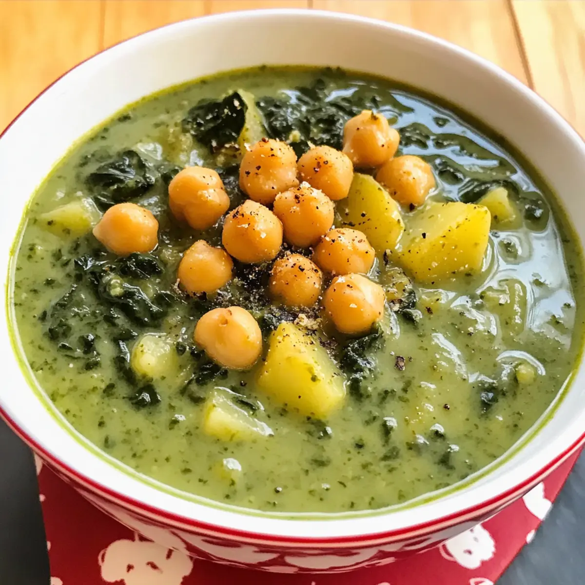 Vegan Spinat-Kartoffel-Suppe mit Kichererbsen