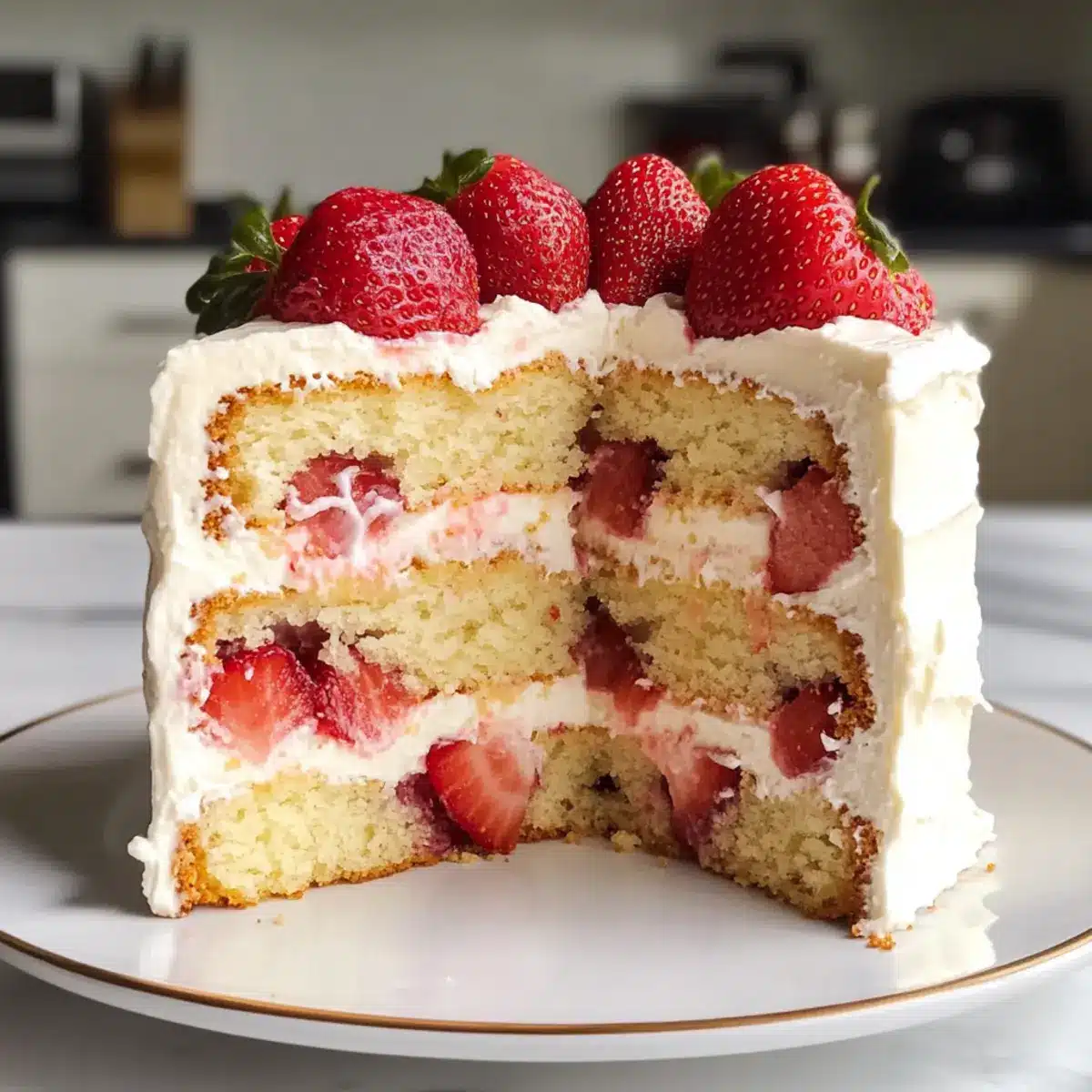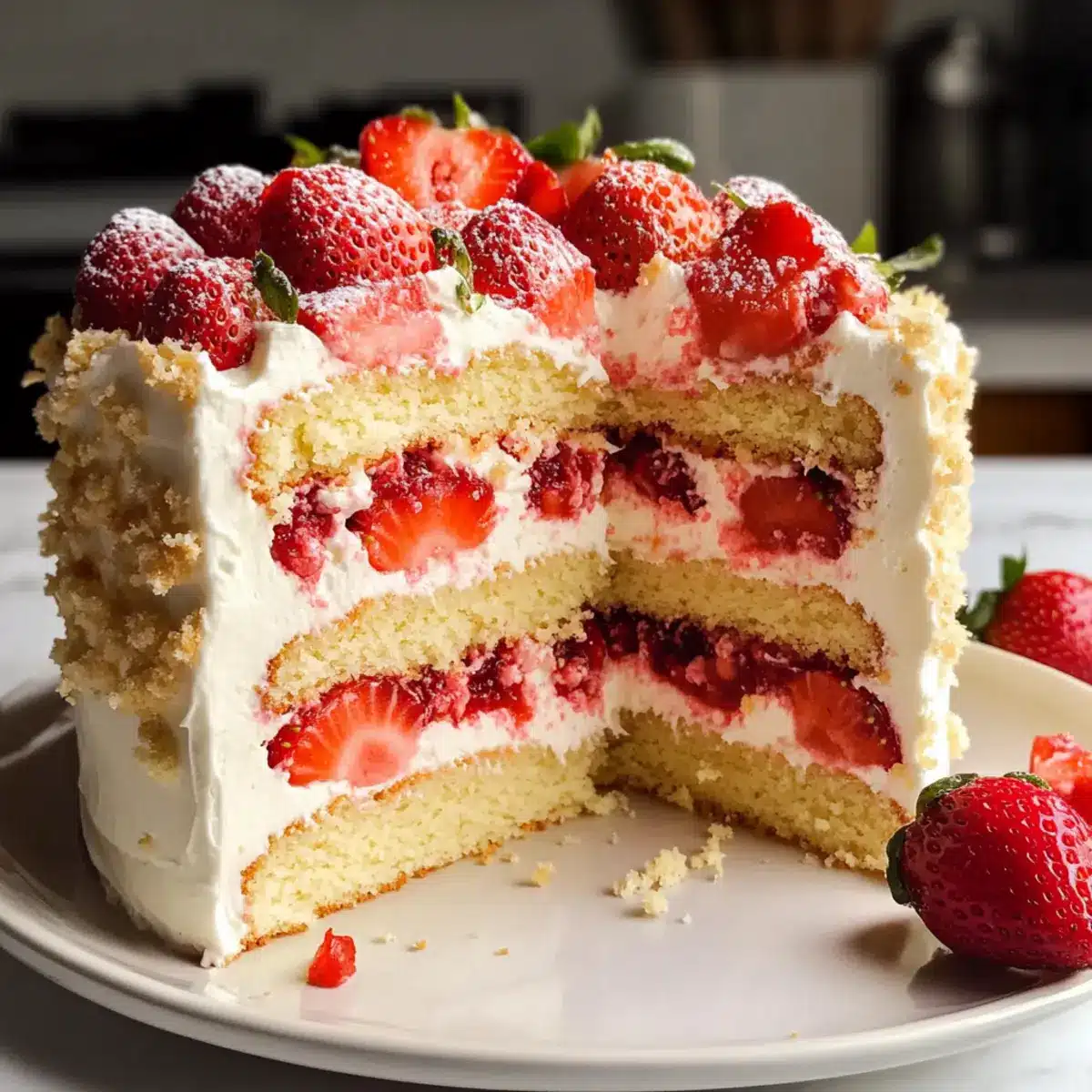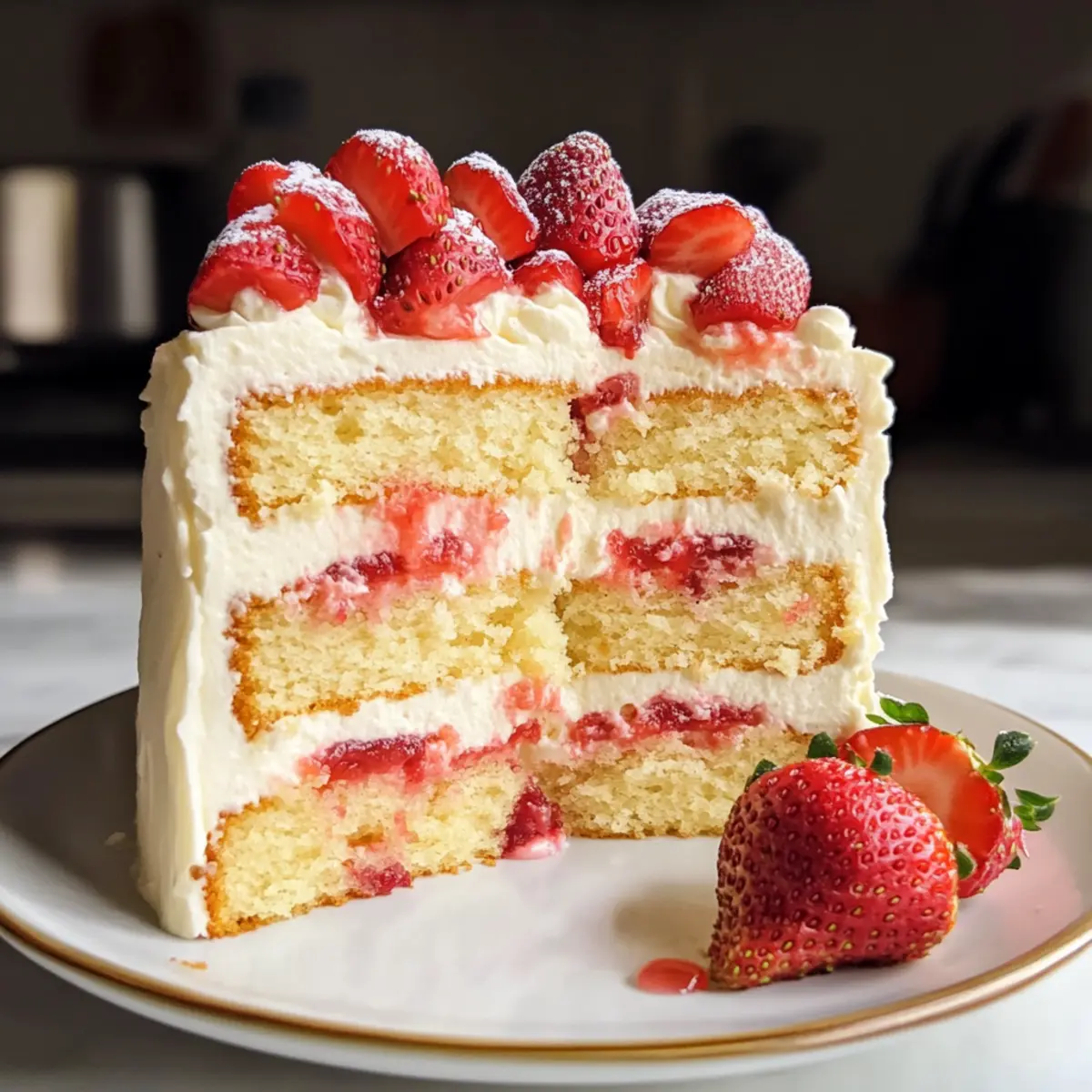 - Verpackte Erdbeeren: Ein einfacher Trick: Einige Erdbeeren leicht pürieren und über die Torte geben. Dies verstärkt den Erdbeergeschmack und sieht toll aus!