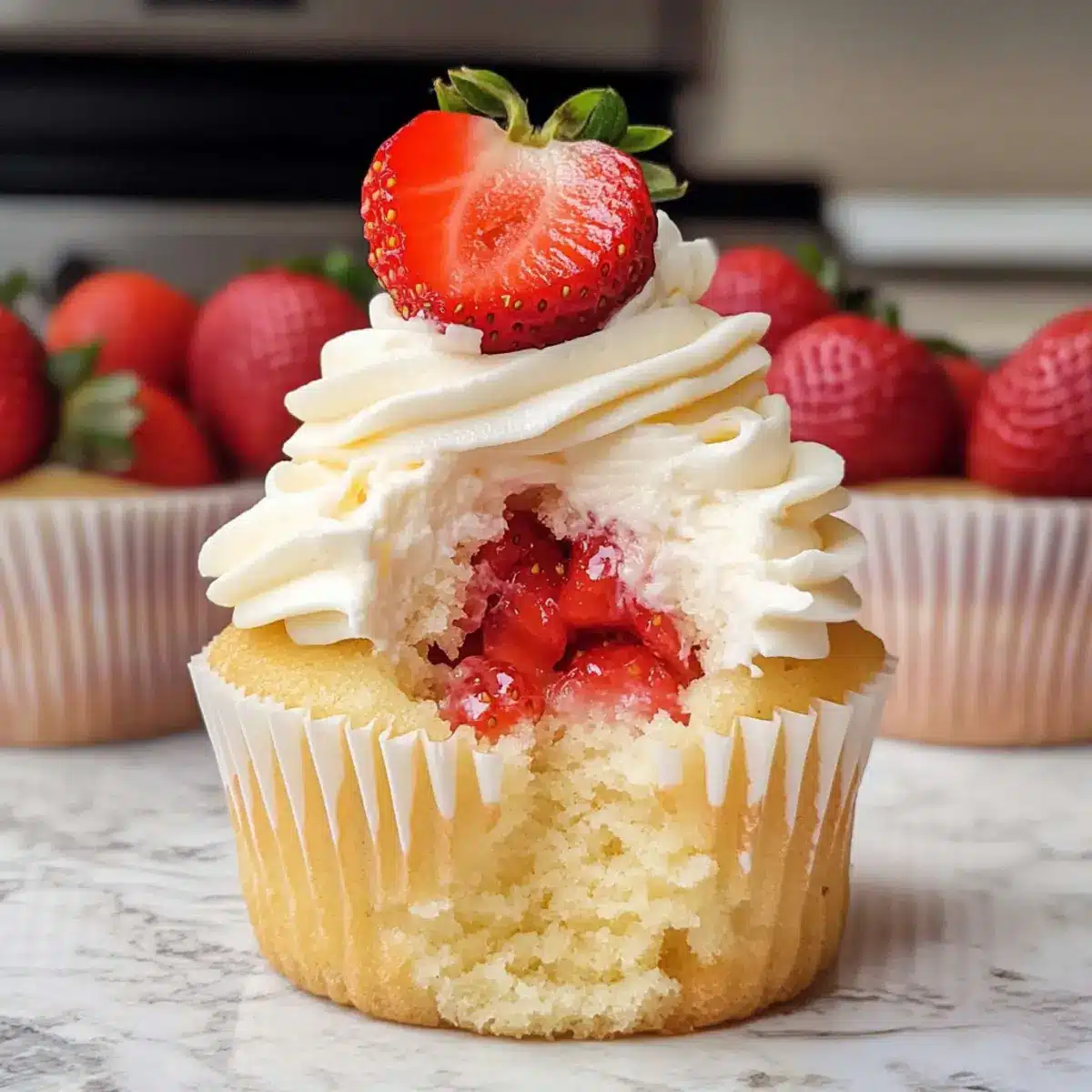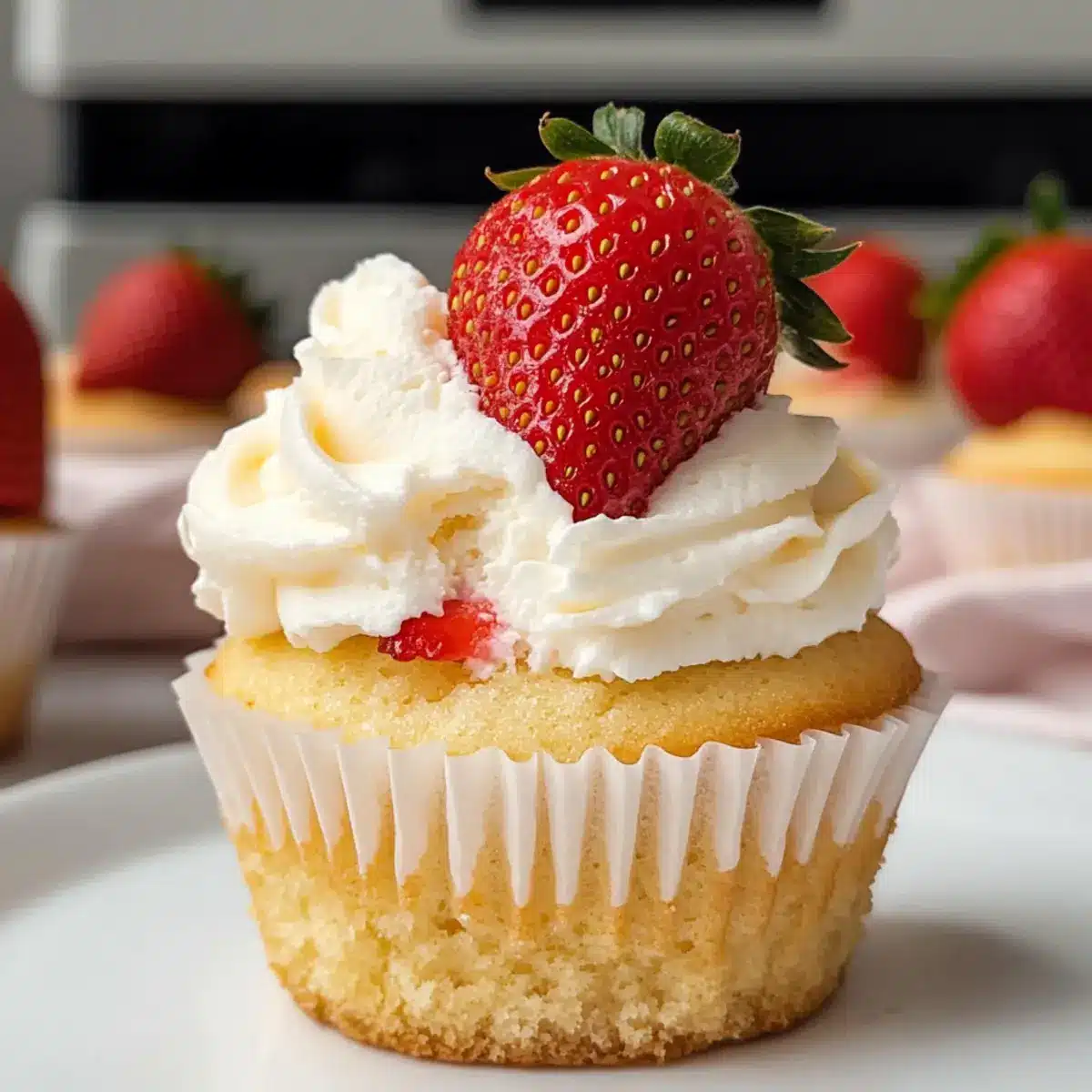 - Serviere die Erdbeerkuchen Cupcakes frisch.