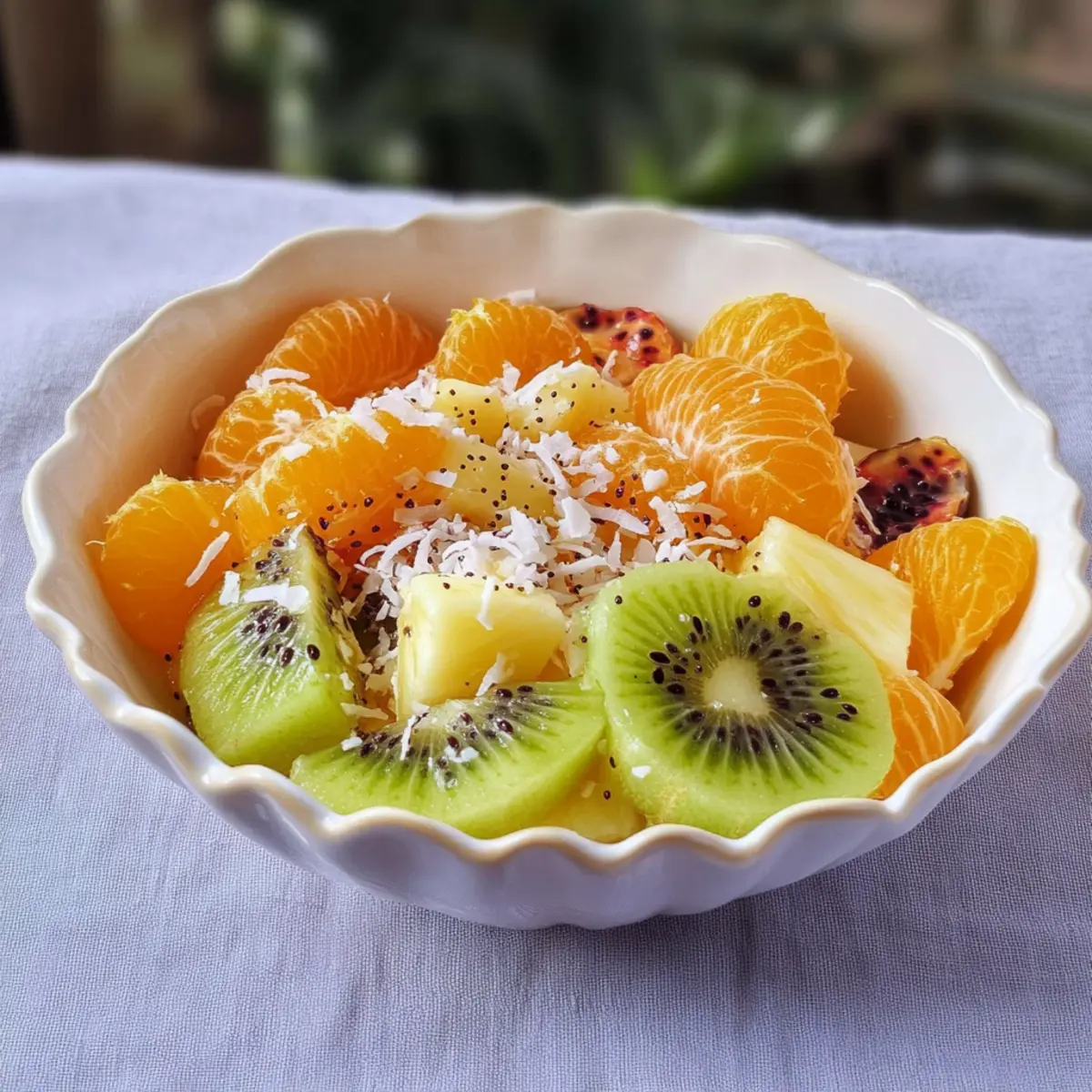 Vorbereitung: Du kannst den exotischen Fruchtsalat mehrere Stunden im Voraus zubereiten. Füge die gerösteten Kokosraspel erst kurz vor dem Servieren hinzu, um ihre Knusprigkeit zu bewahren.