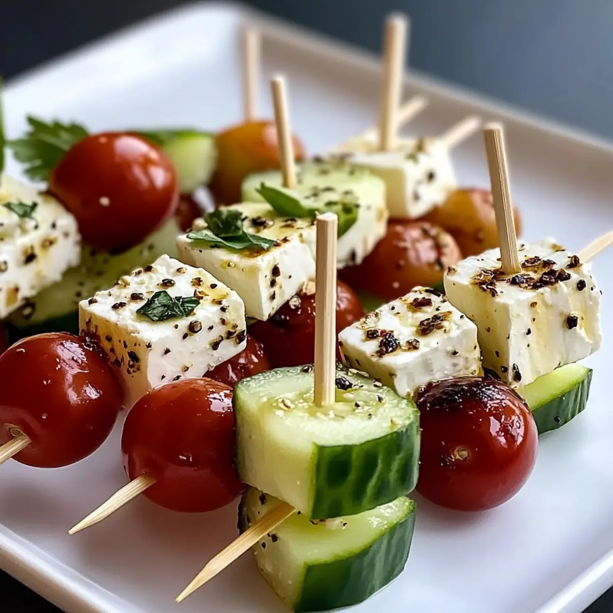 Diese köstlichen Feta Spieße mit Gurke sind nicht nur einfach zuzubereiten, sondern auch perfekt für gesunde Snacks!