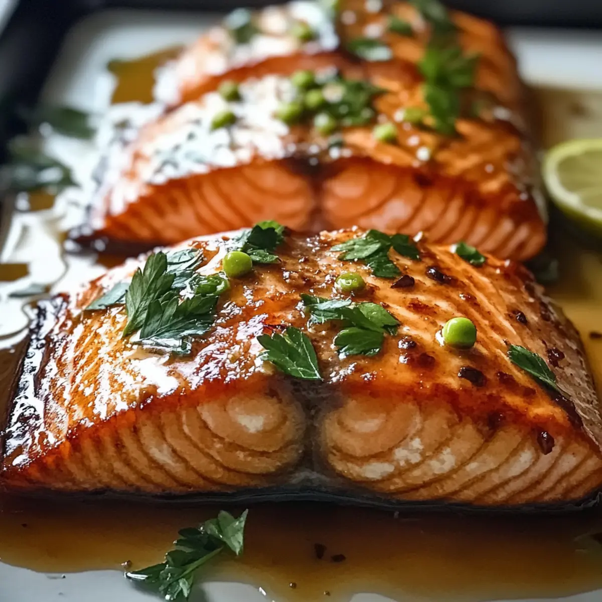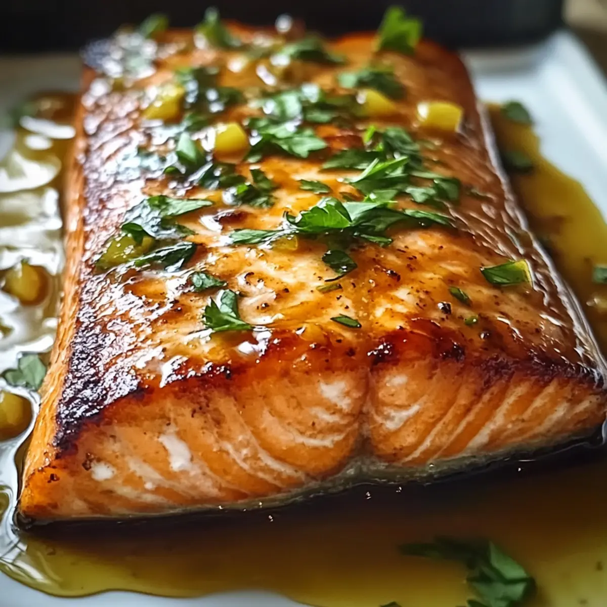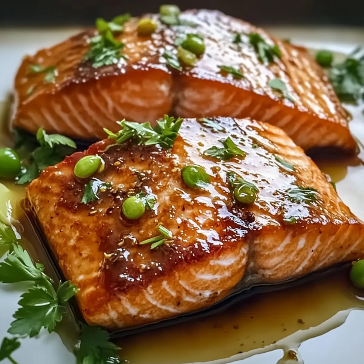 - Gießen Sie die Glasur großzügig über das Lachsfilet.