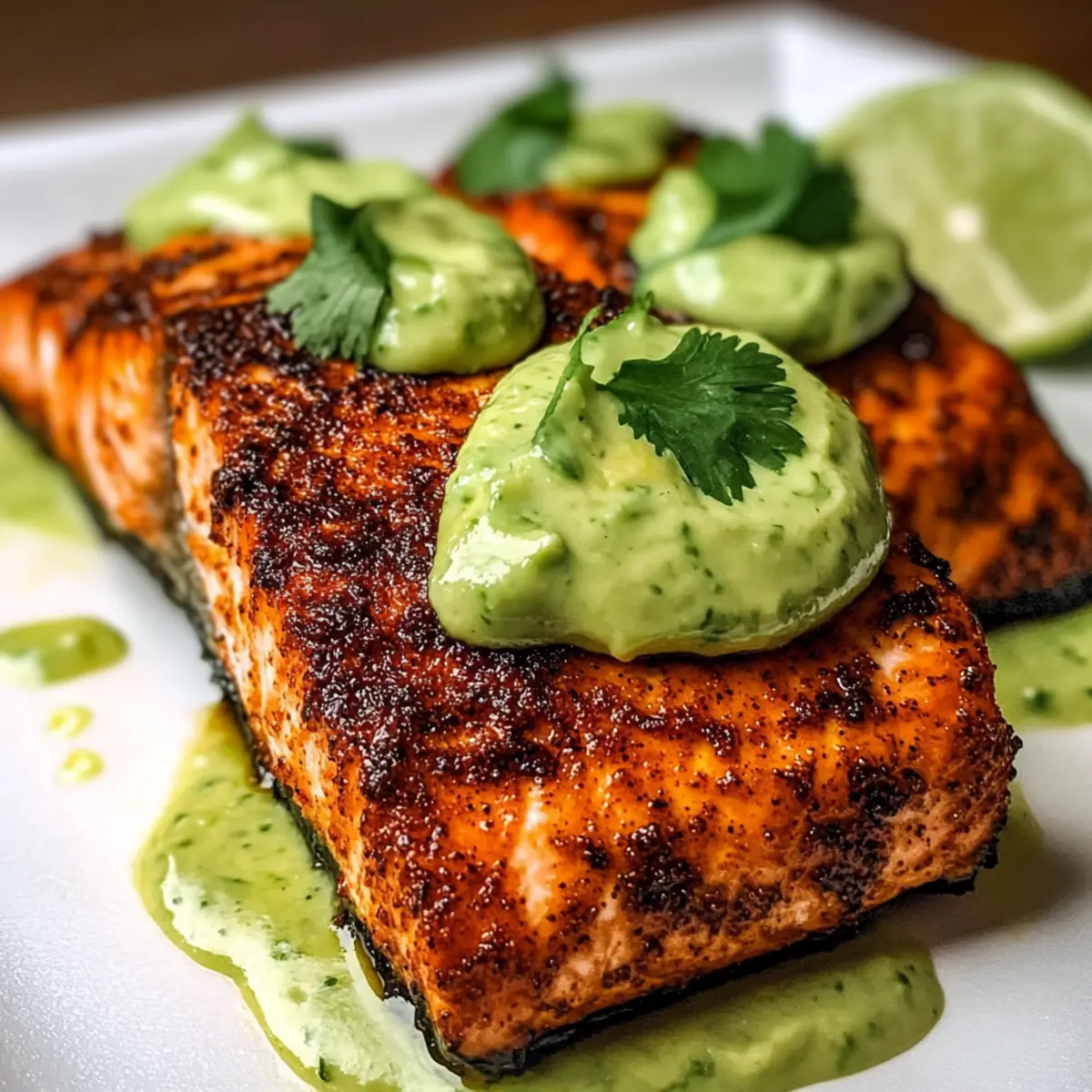 Gebackener Cajun-Lachs mit Avocado-Limetten-Sauce