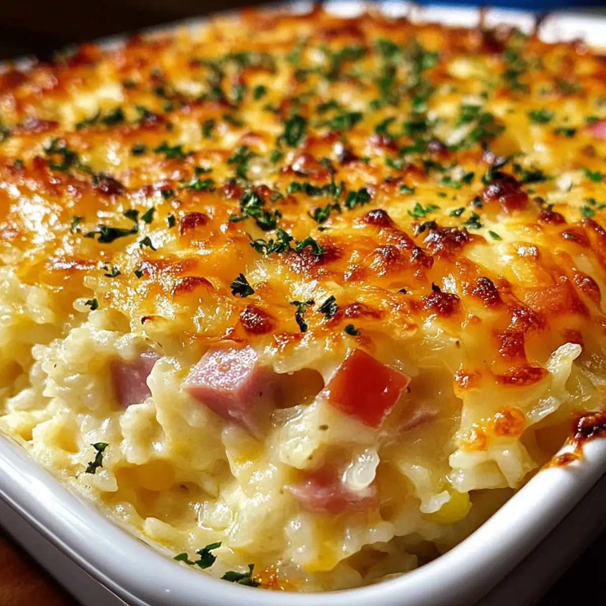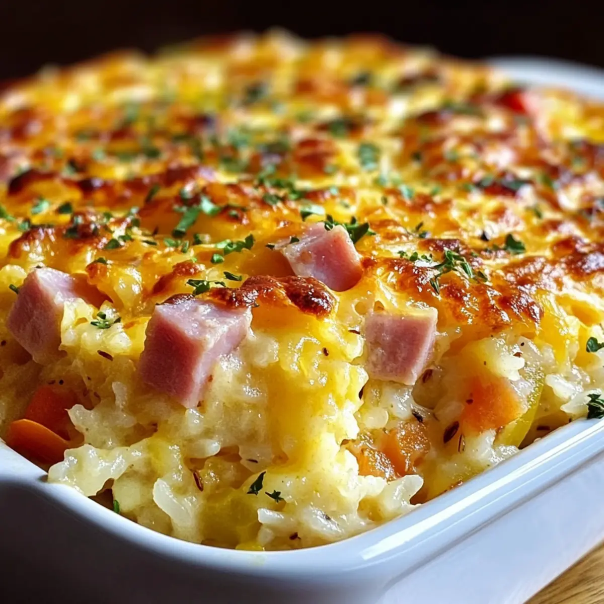 Wiedererwärmen: Für die beste Textur, erwärme den gebackenen Reis mit Schinken und Käse im Ofen bei 180°C (350°F) für 15-20 Minuten, bis er heiß und der Käse geschmolzen ist.