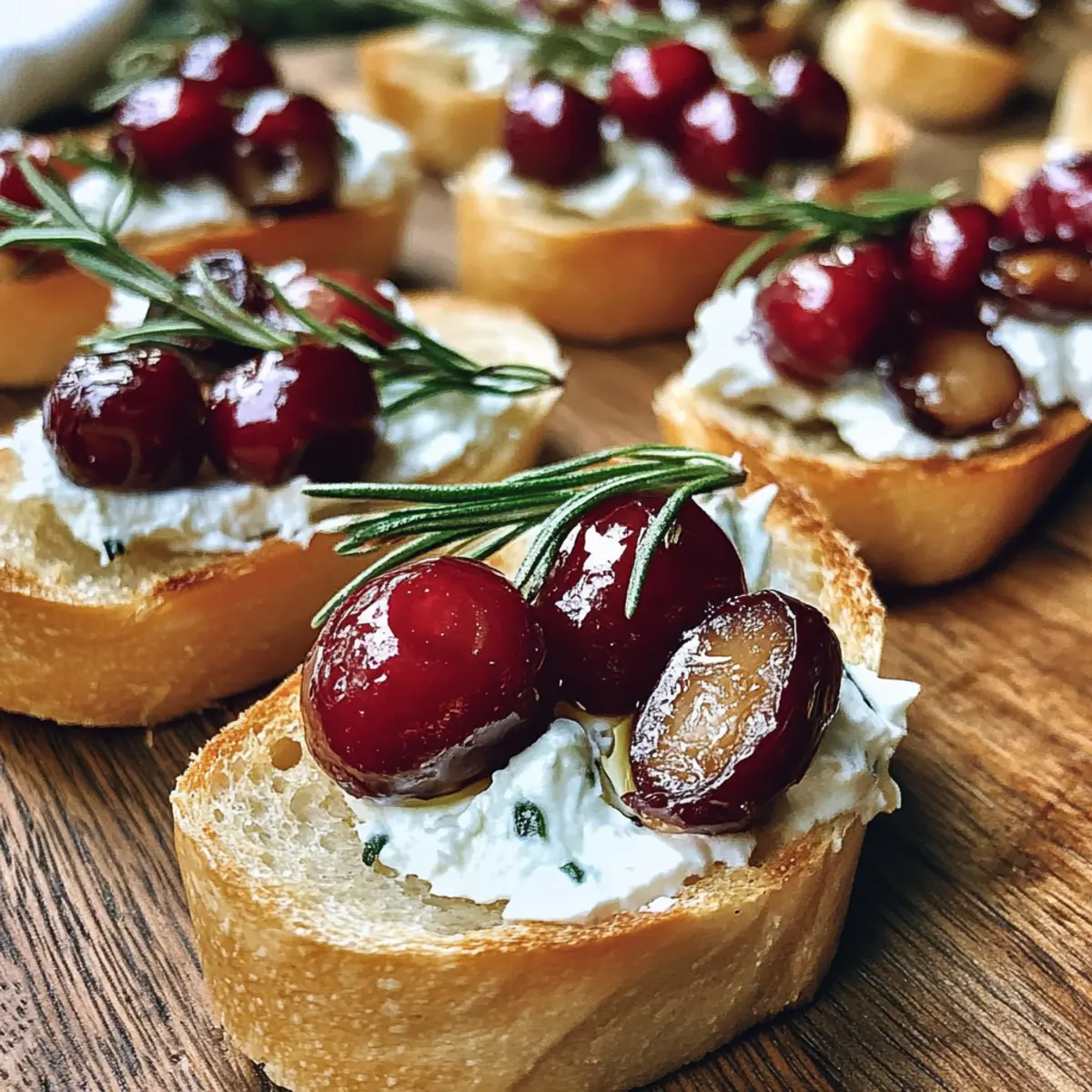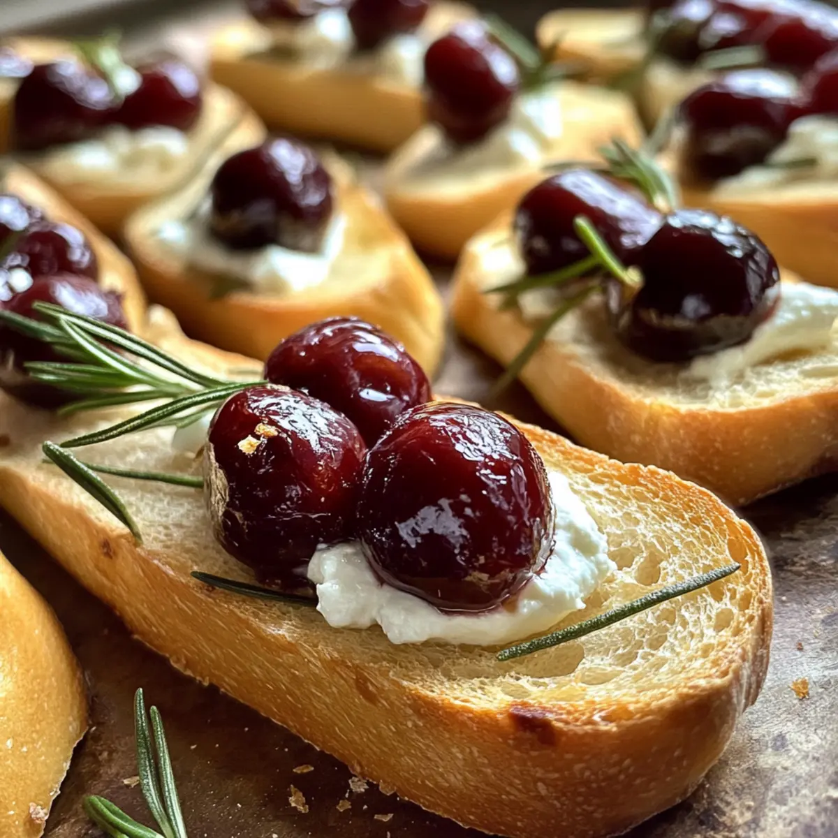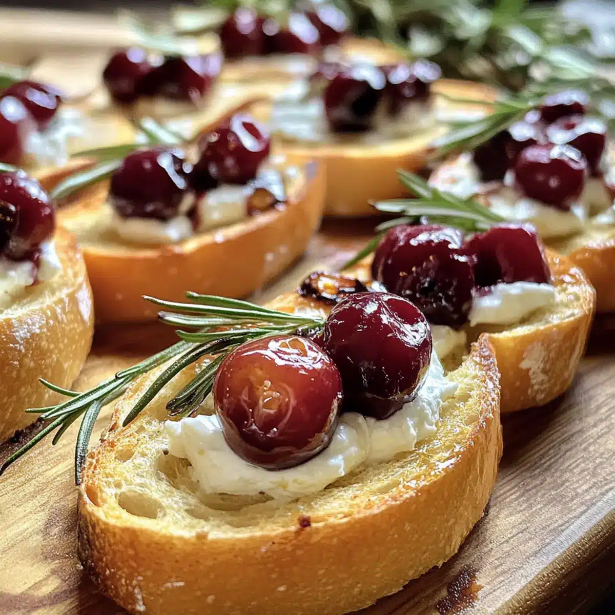 Geröstetes Baguette mit Rosmarin-Kirschen und Fetacreme