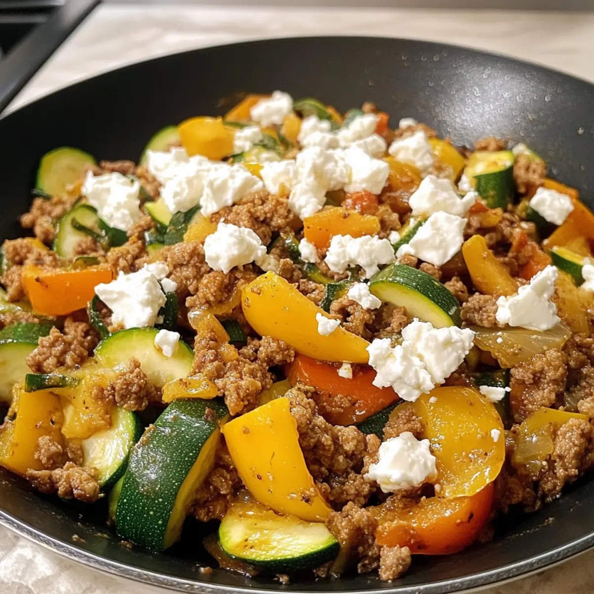 Schritt-für-Schritt-Anleitung für die Griechische Hackfleischpfanne mit Gemüse und Feta – Low Carb Gericht