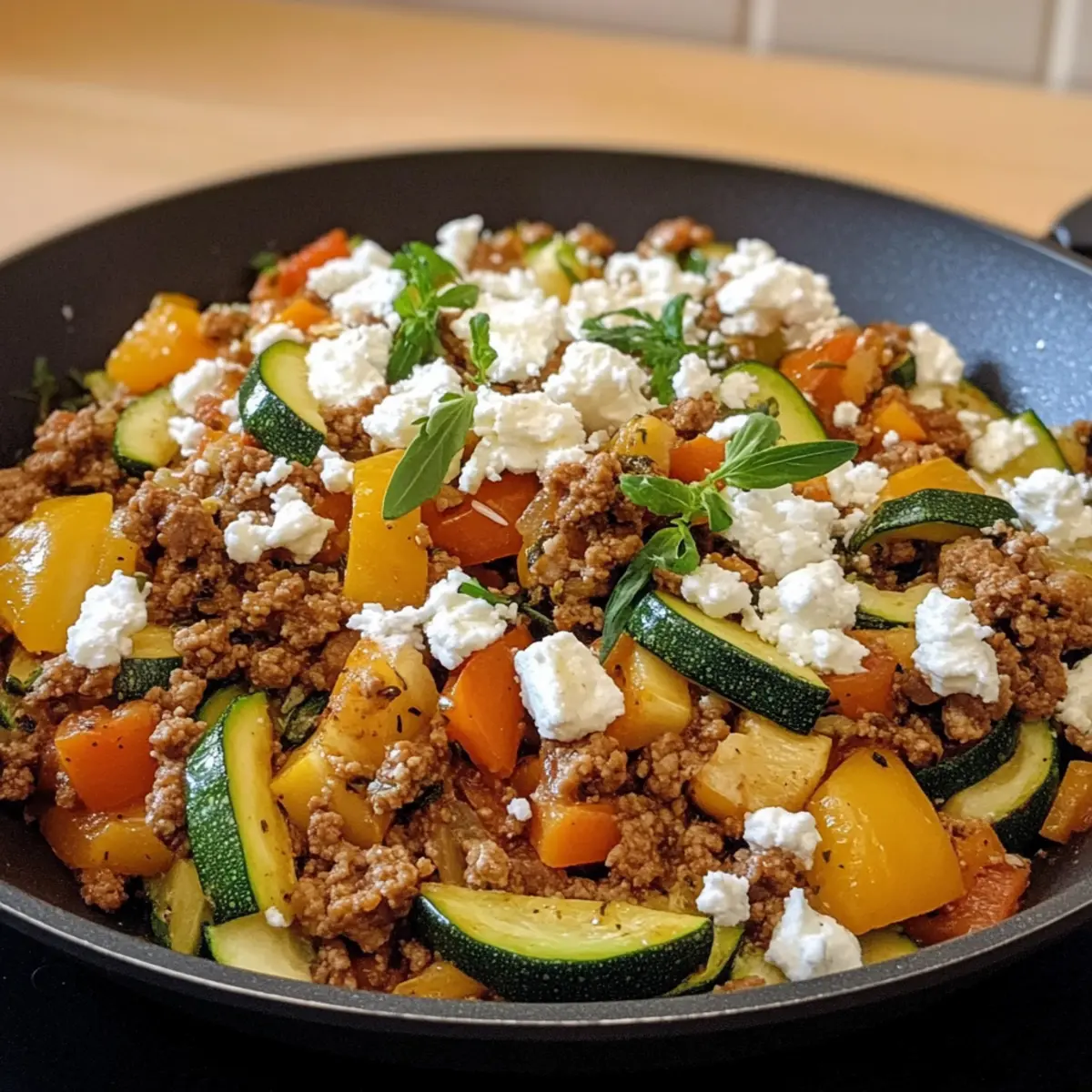 Die Griechische Hackfleischpfanne mit Gemüse und Feta – Low Carb Gericht ist nicht nur schnell zubereitet, sondern auch vollgepackt mit köstlichen Aromen, die deine Geschmacksnerven verwöhnen werden!
