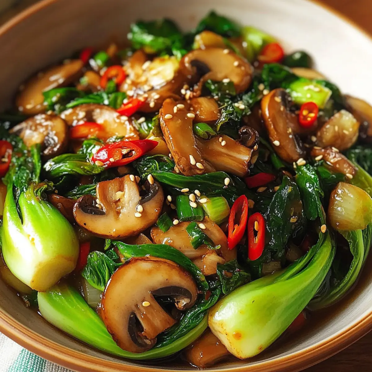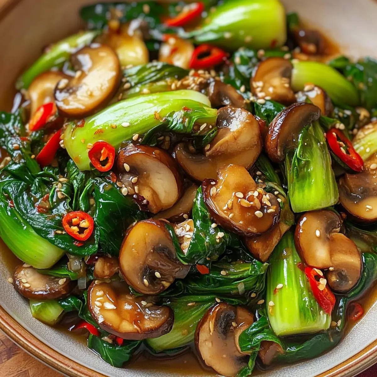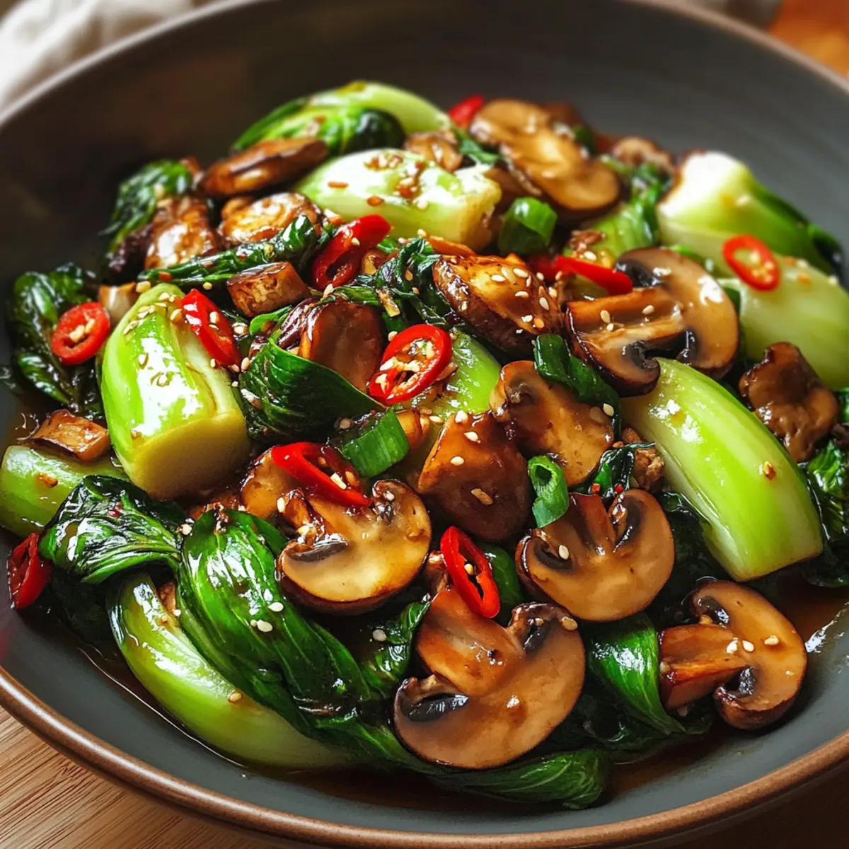 Herzhafter Knoblauch Champignon Bok Choy Pfanne für Eilige