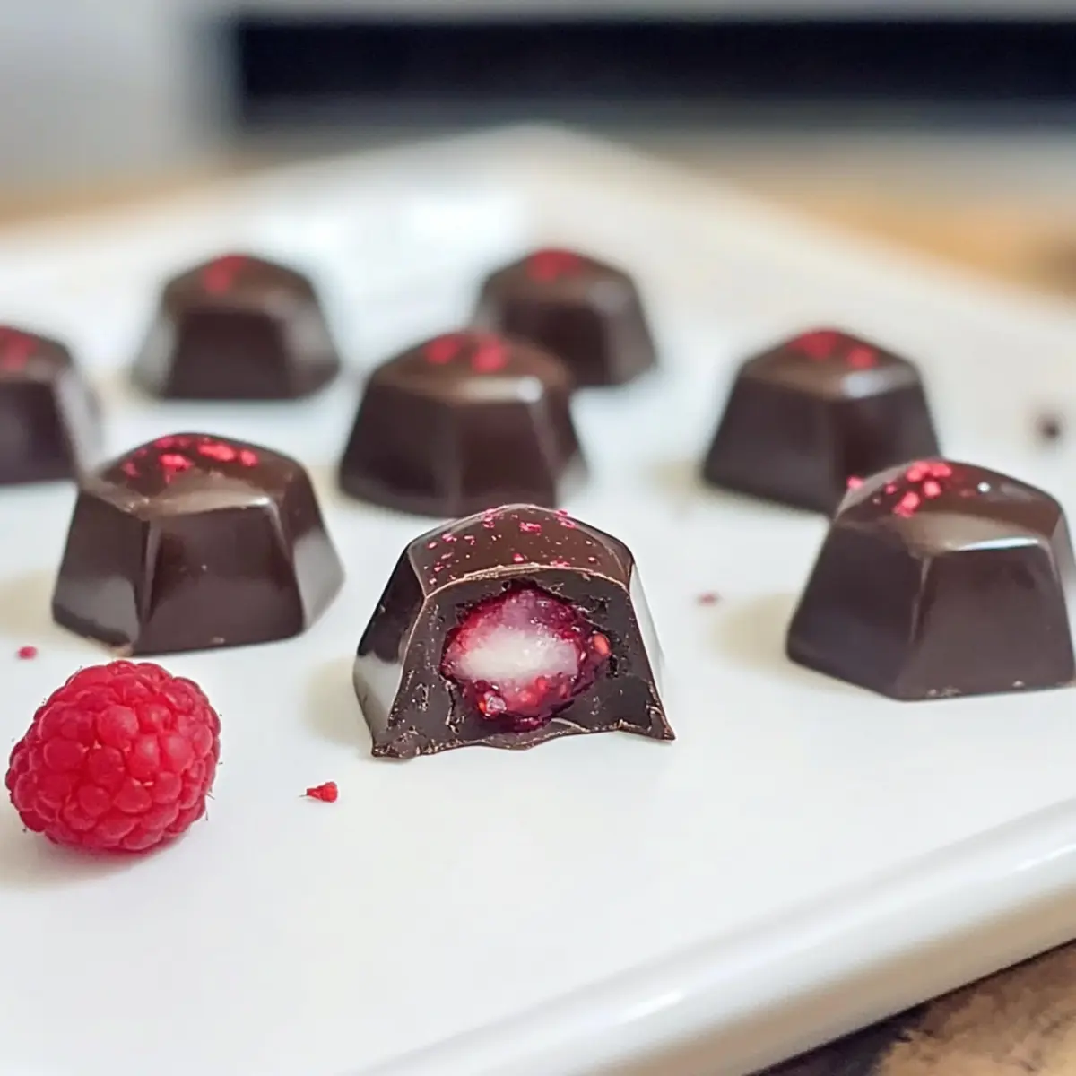 - Würzige Pralinen: Füge eine Prise Zimt oder Cayennepfeffer hinzu, um den Himbeergeschmack spannend zu intensivieren – eine ungewöhnliche, süß-scharfe Kombination.