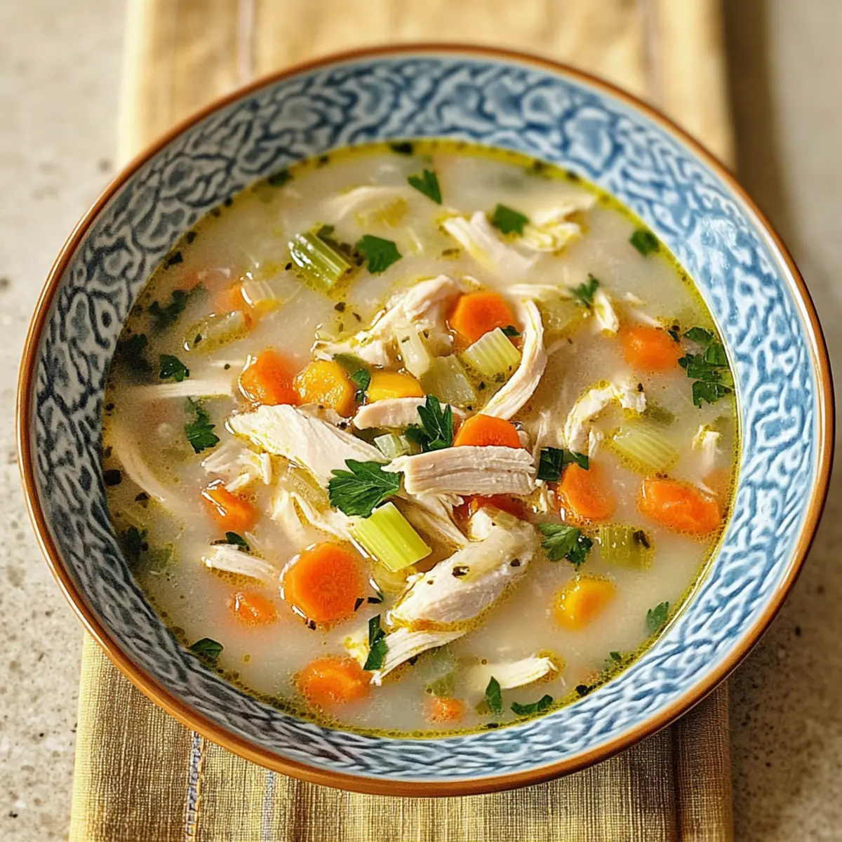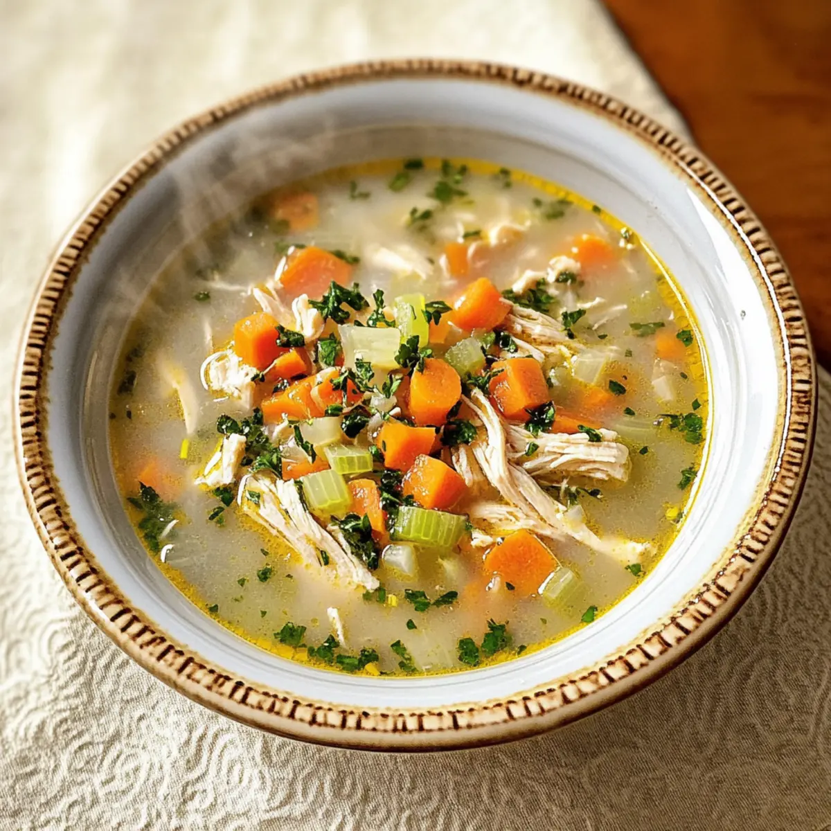Herzlicher Genuss: Diese klassische Hühnereinmachsuppe bringt die Geborgenheit deiner Kindheit direkt auf den Tisch. Einfache Zubereitung: Das Rezept erfordert nur grundlegende Kochfähigkeiten und wenig Zeit, perfekt für beschäftigte Tage. Zutatenvielfalt: Du kannst mit verschiedenen Gemüsesorten experimentieren – von Süßkartoffeln bis hin zu Erbsen! Wohltuend: Sie ist nicht nur köstlich, sondern auch nährend und ideal für gemütliche Abende. Vielseitige Variationen: Ob du das Huhn gegen Pute eintauschst oder die Sahne durch Kokosmilch ersetzt, du kannst immer neue Geschmäcker entdecken. Probiere auch, sie mit einem großen Stück frischem Brot zu servieren – ein wahrer Genuss!