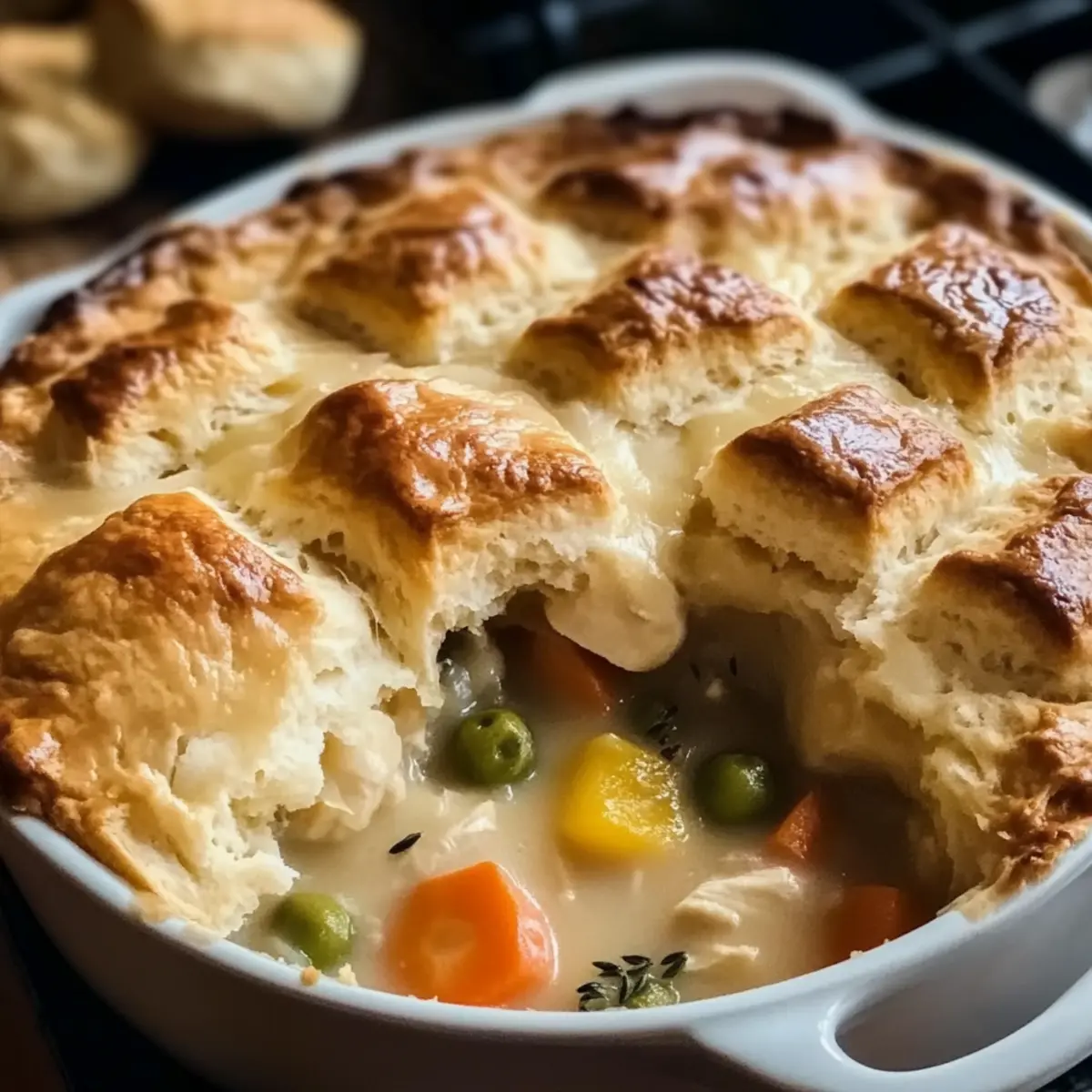 Zufriedenheit garantiert! Dieses Hühnerpastete mit Keksen verbindet köstliche Aromen mit einfacher Zubereitung. Schnell und unkompliziert: In nur 40 Minuten bist du bereit, dieses Familiengericht auf den Tisch zu bringen. Vielfältig und anpassbar: Egal ob mit frischem Gemüse oder übrig gebliebenem Huhn, du kannst kreativ werden. Ideales Comfort Food: Die Kombination aus cremiger Füllung und fluffigem Kekstopping wird jeden begeistern. Perfekt für alle: Egal ob du Kochanfänger oder Gourmet bist, dieses Rezept ist ein Gewinn für jedes Zuhause – und perfekt mit einem frischen Salat oder einer herzhaften Lasagne Suppe mit kombiniert!