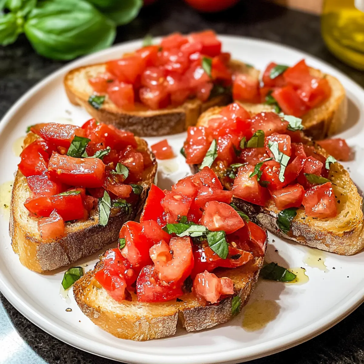 Raumtemperatur: Die Bruschetta sollte idealerweise sofort serviert werden, da das Brot schnell weich werden kann.