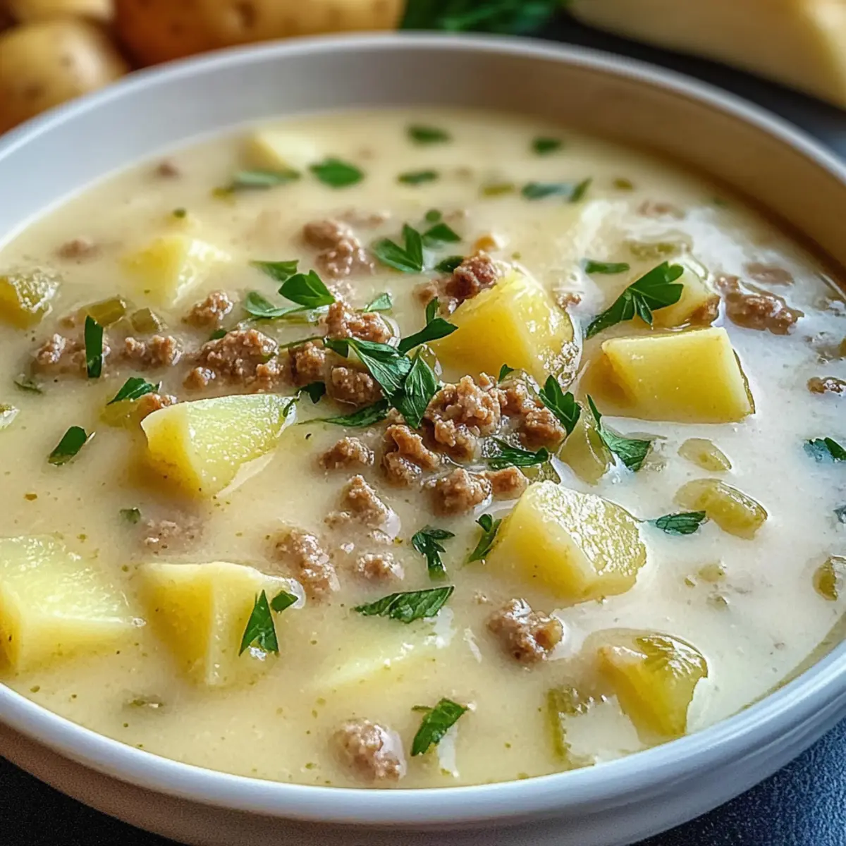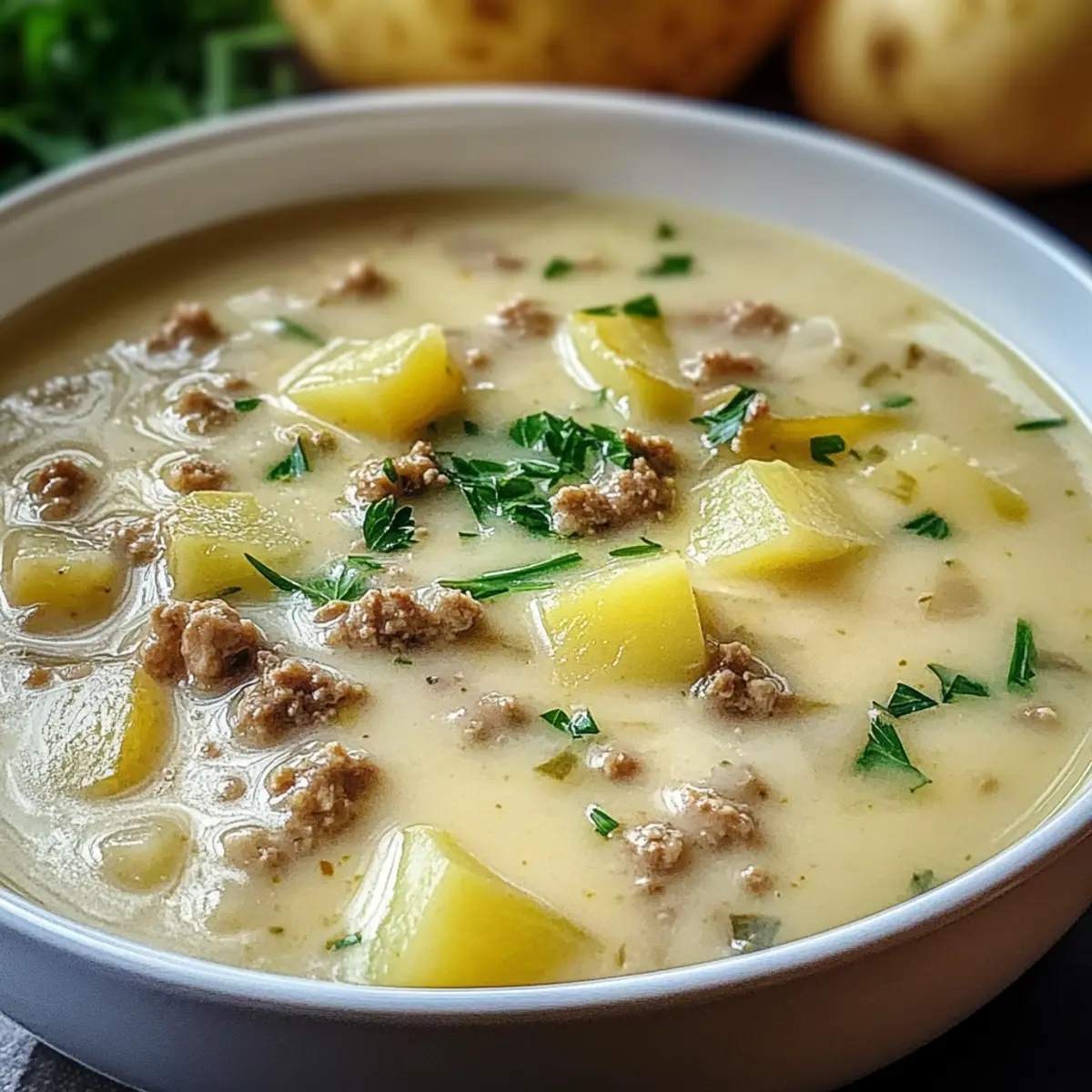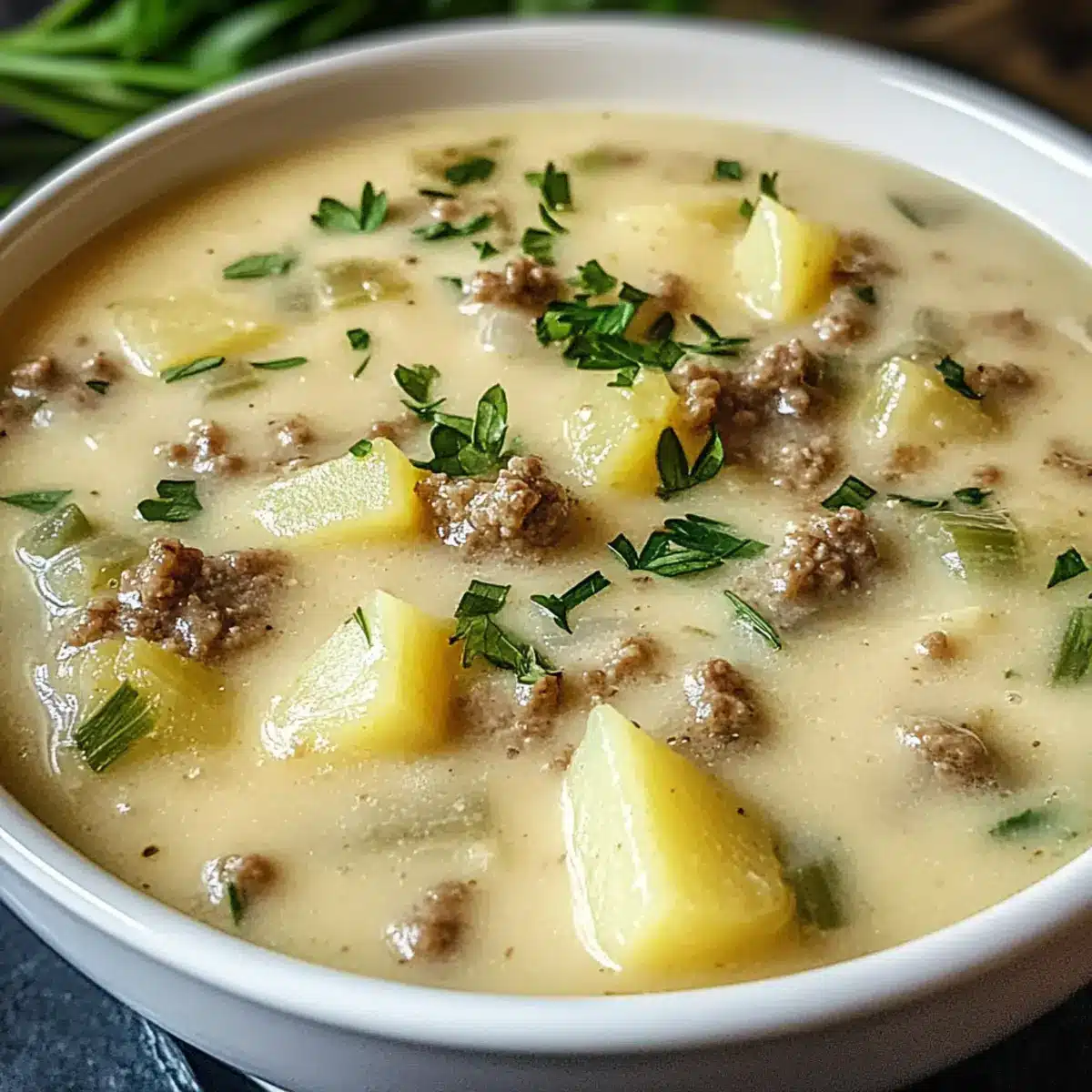 Käse-Lauch-Suppe mit Hackfleisch und Kartoffeln genießen
