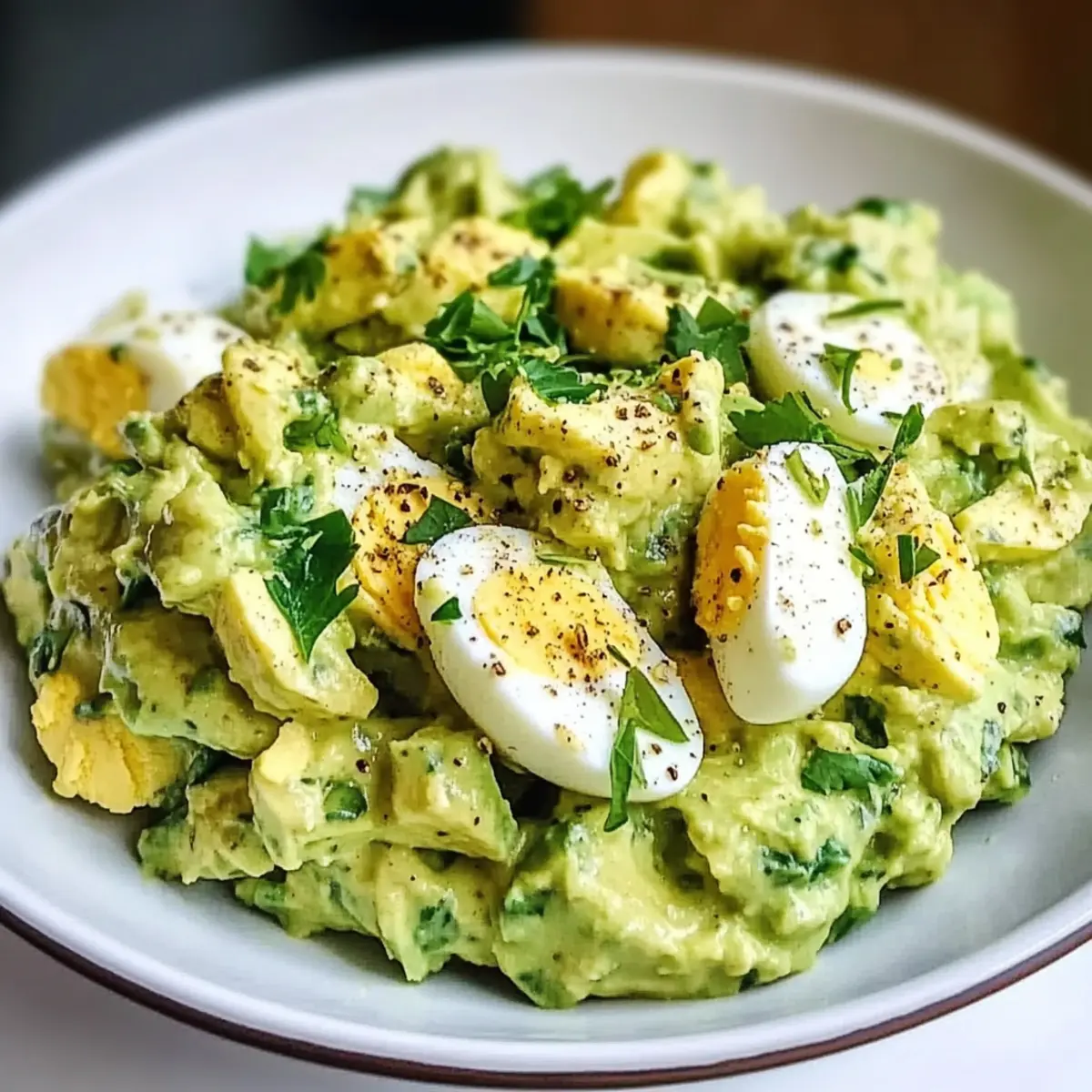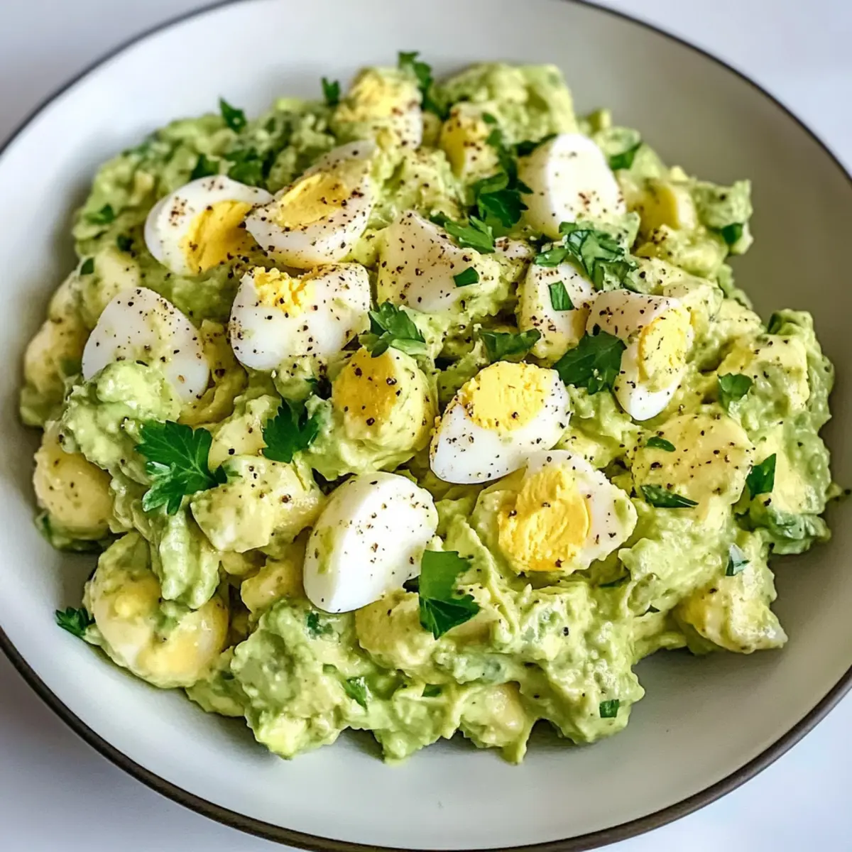 Sanftes Mischen: Achte darauf, die Zutaten vorsichtig zusammenzufügen, um die Stückchen von Eiern und Avocados zu bewahren. So bleibt die Konsistenz angenehm und cremig.