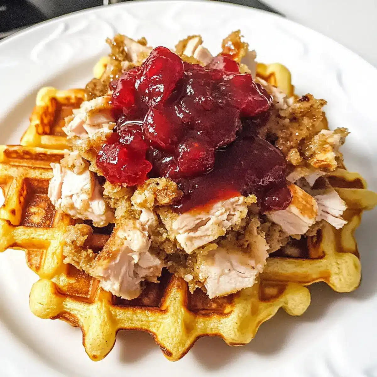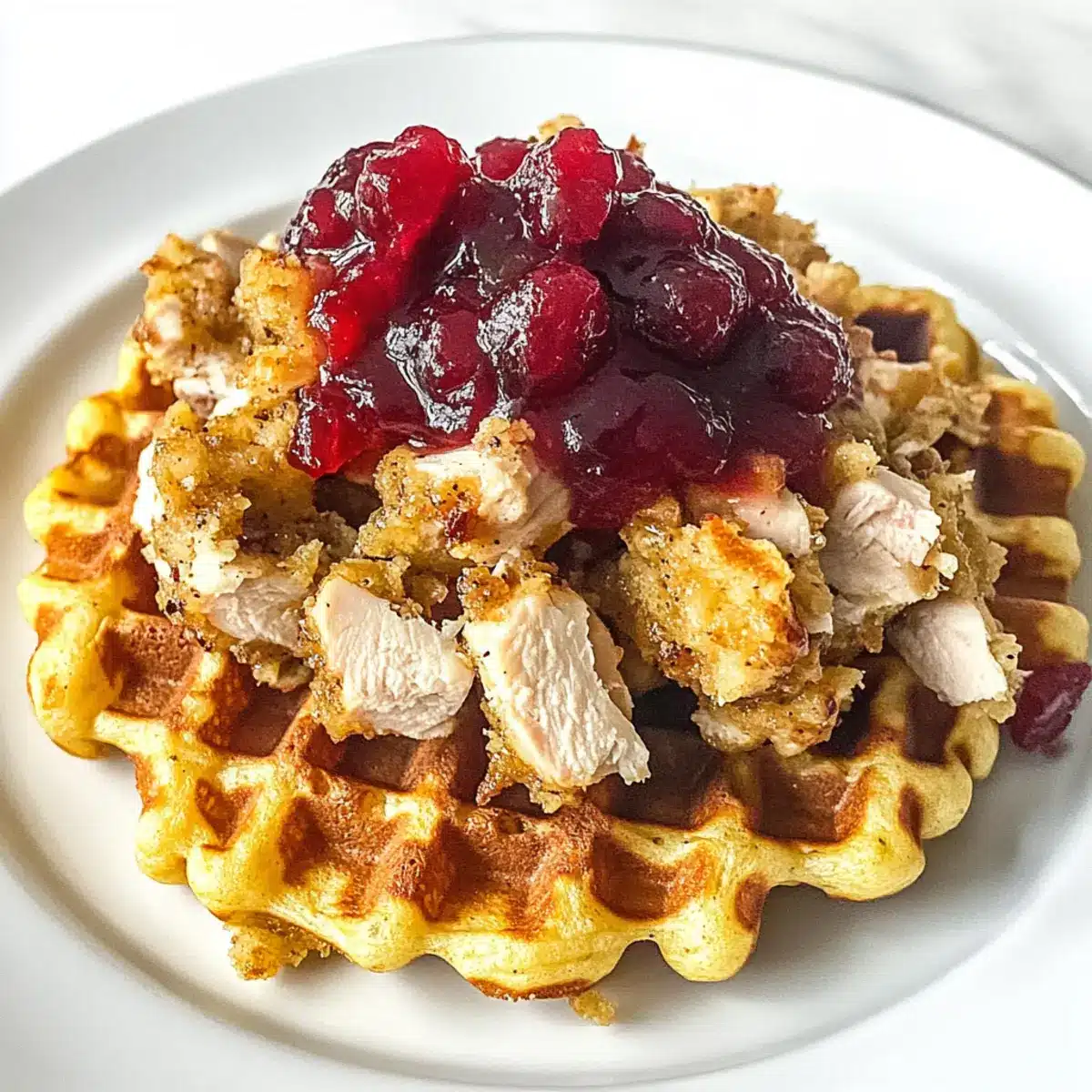 Vielseitige Genussoptionen: Diese Waffeln sind nicht nur ideal für Reste, sondern erfahren auch durch kreative Toppings wie warme Cranberrysauce oder Gravy eine geschmackliche Aufwertung.