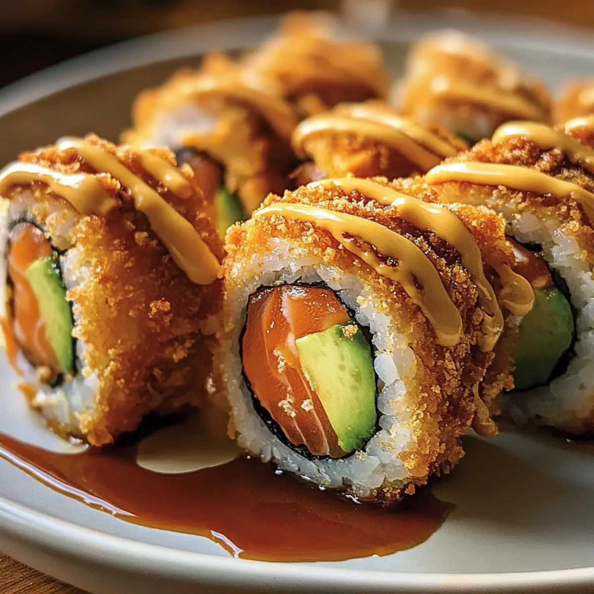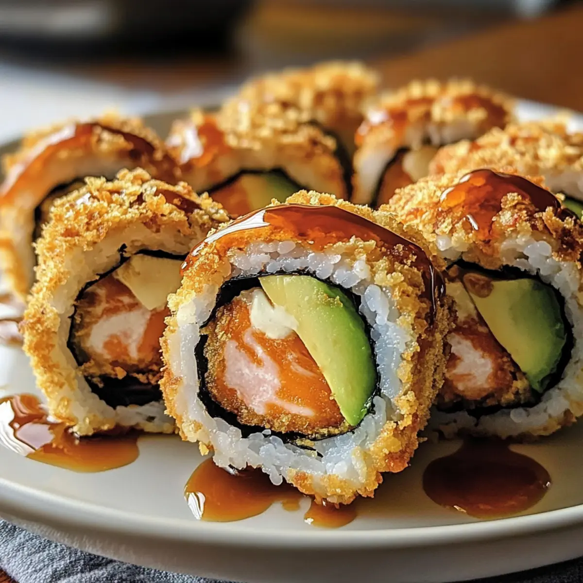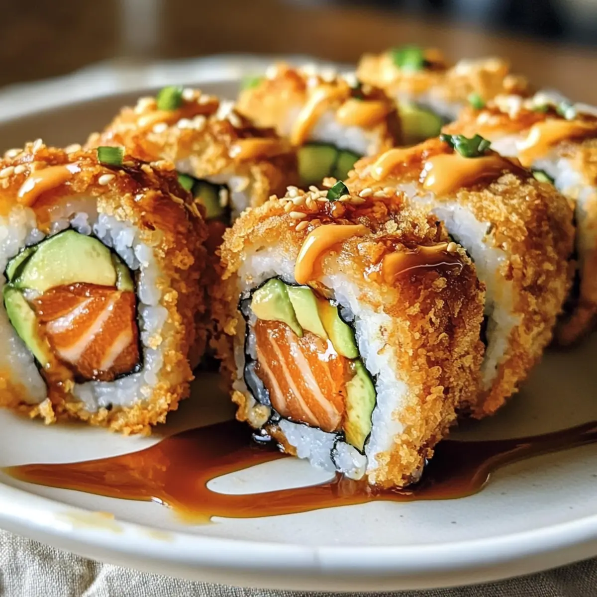 Verwöhne dich und deine Lieben mit diesen knusprigen frittierten Lachs- und Avocadorollen!