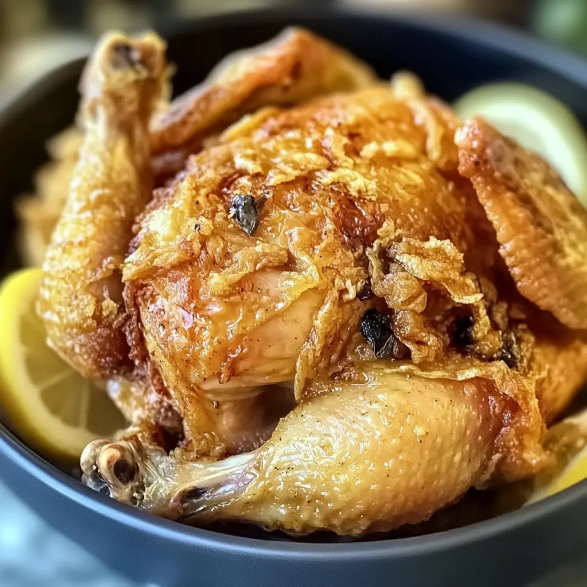 - Zitrone (in Scheiben) – Bringt Frische und harmoniert wunderbar mit dem reichhaltigen Hähnchen; frische Kräuter können als Garnitur verwendet werden.