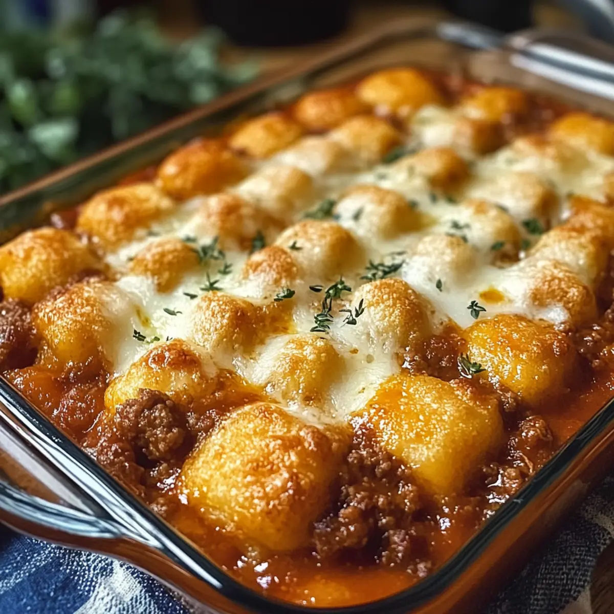 Du kannst deinen Krokettenauflauf mit Hackfleisch für den perfekten Genuss ganz einfach im Voraus zubereiten, was dir wertvolle Zeit an hektischen Abenden spart! Die Füllung kann bis zu 3 Tagen im Voraus zubereitet und in einem luftdichten Behälter im Kühlschrank aufbewahrt werden. Bereite die Füllung wie beschrieben zu und lass sie vollständig abkühlen, bevor du sie in den Kühlschrank stellst, um die Qualität zu erhalten. Wenn du bereit bist zu backen, gib die kalte Füllung in die Auflaufform, lege die gefrorenen Kroketten darauf und streue den Käse darüber. Backe das Ganze dann direkt im vorgeheizten Ofen bei 180 °C für etwa 30 Minuten, bis der Käse goldbraun ist. So hast du schnell ein köstliches Gericht, das just as delicious ist!
