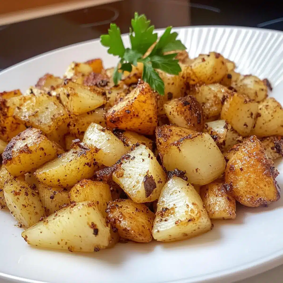 - Low Carb Bratkartoffeln aus Kohlrabi sofort servieren oder pur genießen.