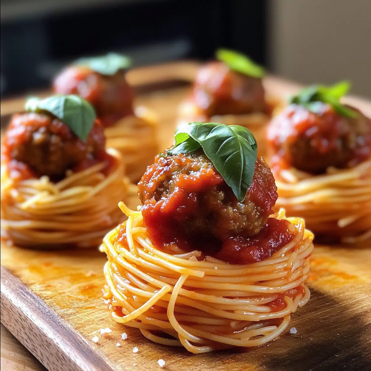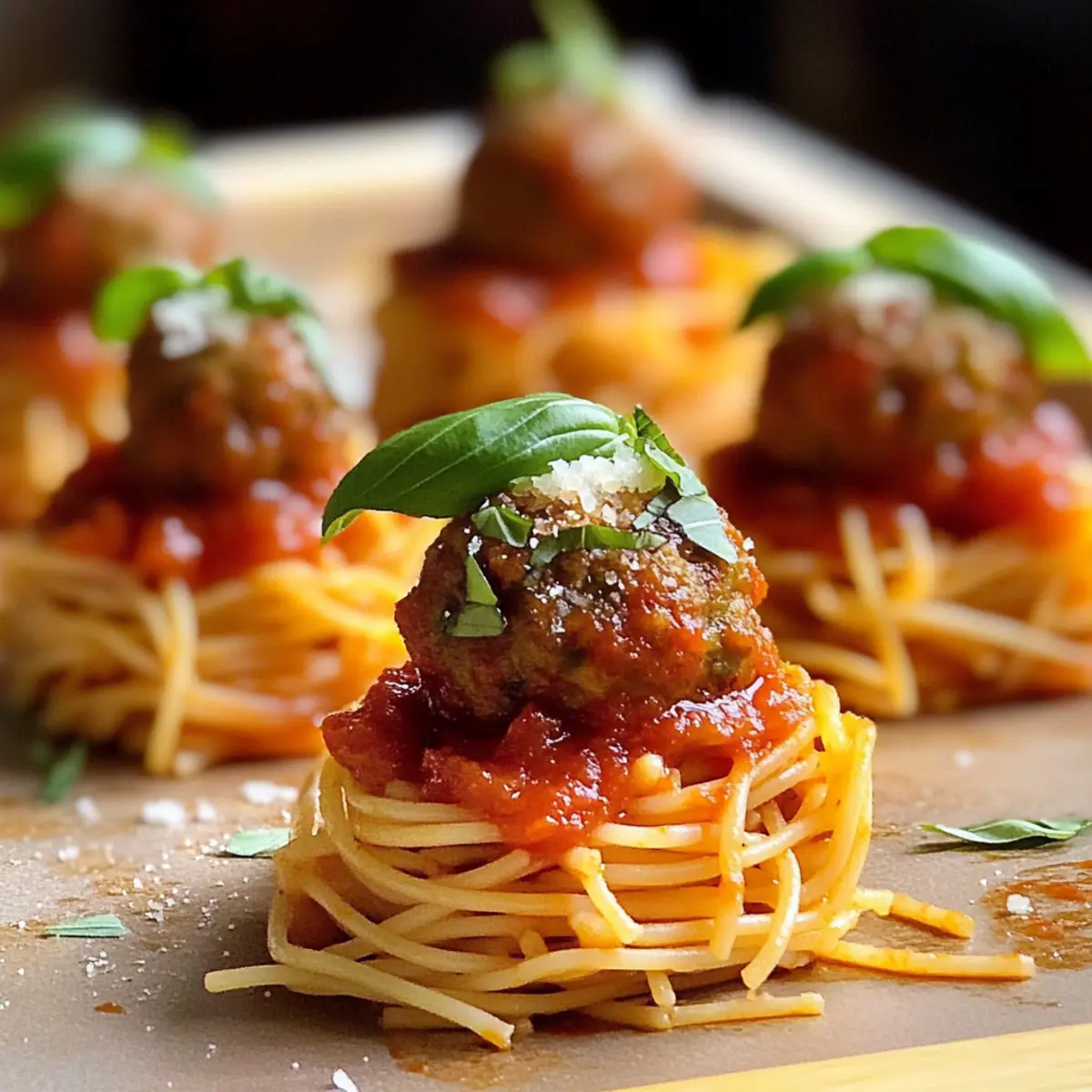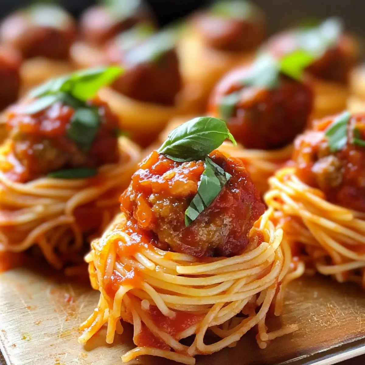 Mini Spaghetti und Fleischbällchen Häppchen für Jeden