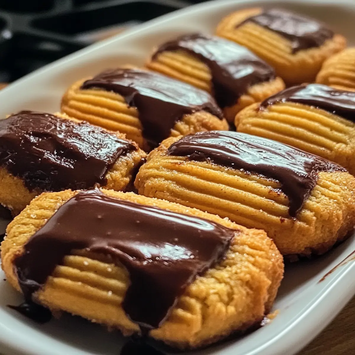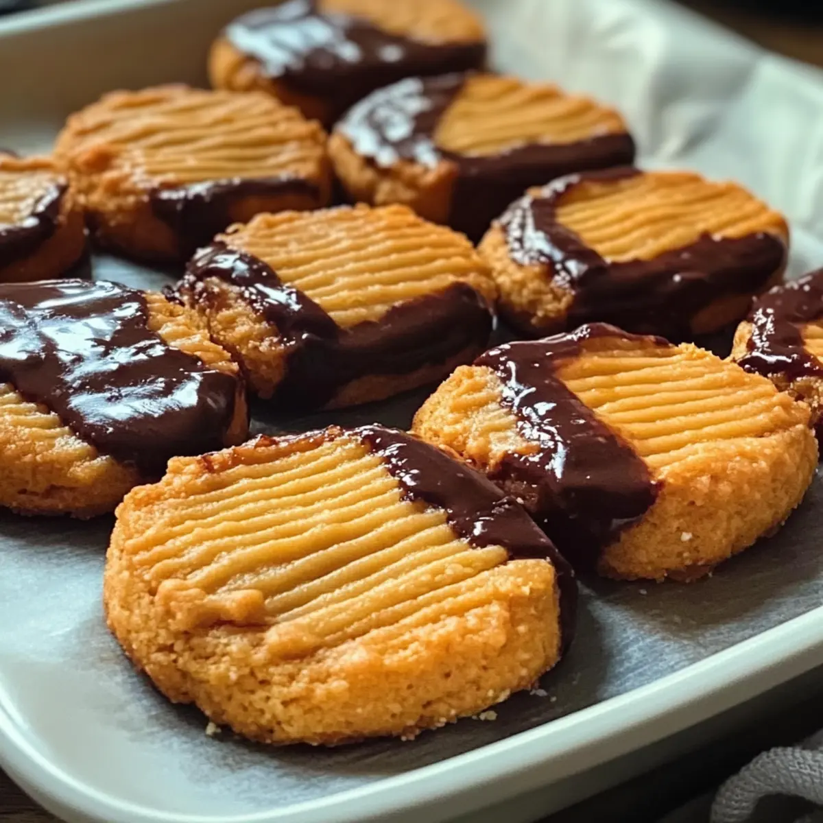 - Tauche die abgekühlten Kekse in die Schokolade und lasse den Überschuss abtropfen.