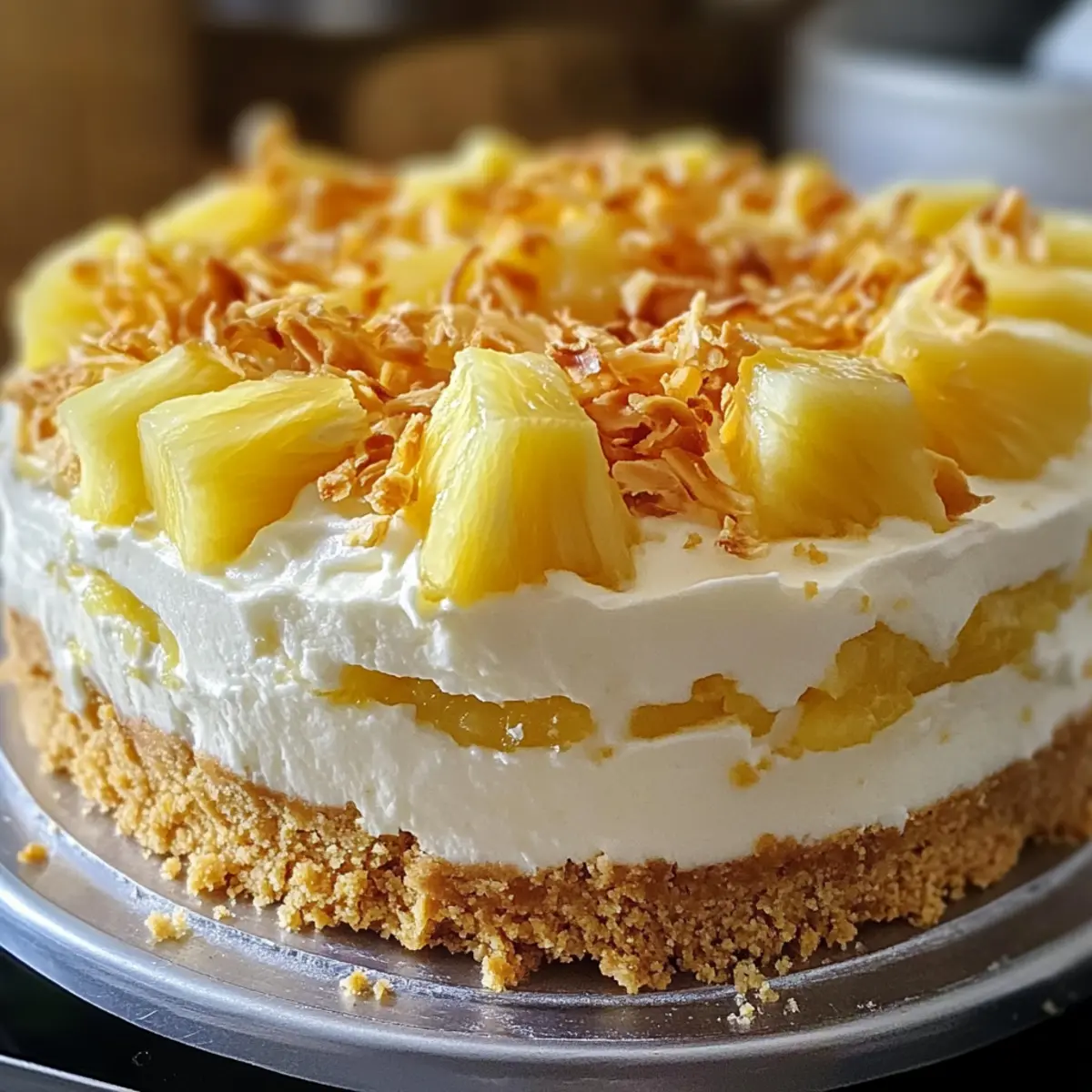 Dieser No-Bake Ananas Mousse Käsekuchen ist ein wahrer Genuss und wird sicher zum Highlight eurer nächsten Zusammenkunft!
