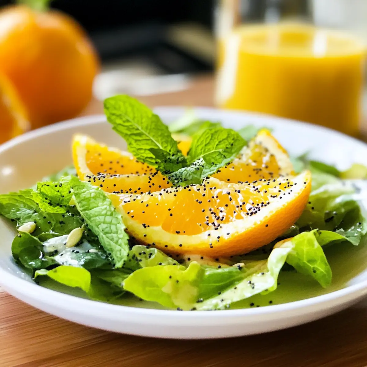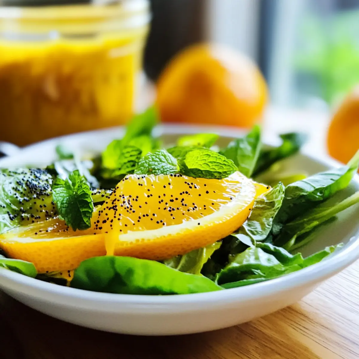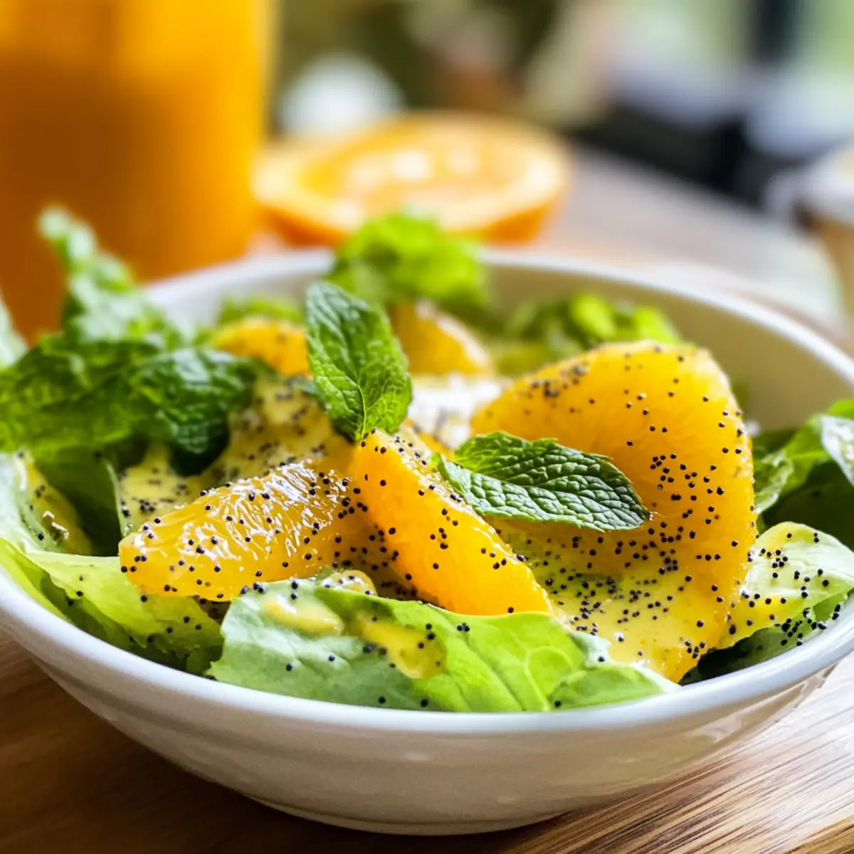 Falls gewünscht, können Sie Mohnsamen oder frisch gehackte Minze in die Vinaigrette geben. Diese Zutaten sorgen für zusätzliche Textur und frische Aromen. Mischen Sie gut durch, um sicherzustellen, dass sich die optionalen Zutaten gleichmäßig in der Orangen Vinaigrette verteilen.
