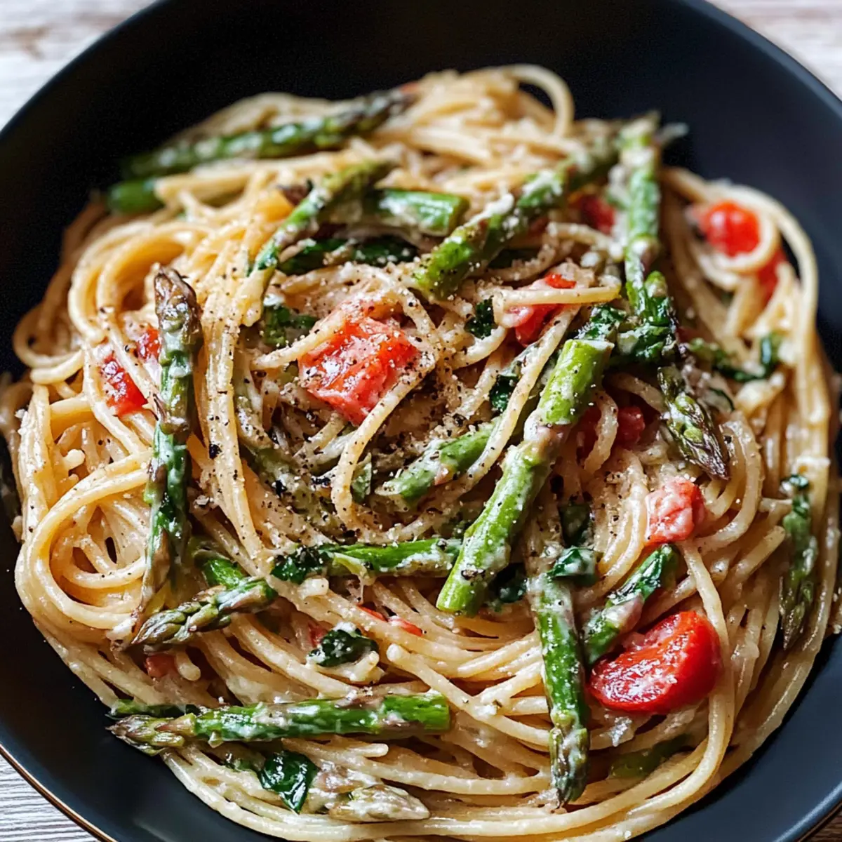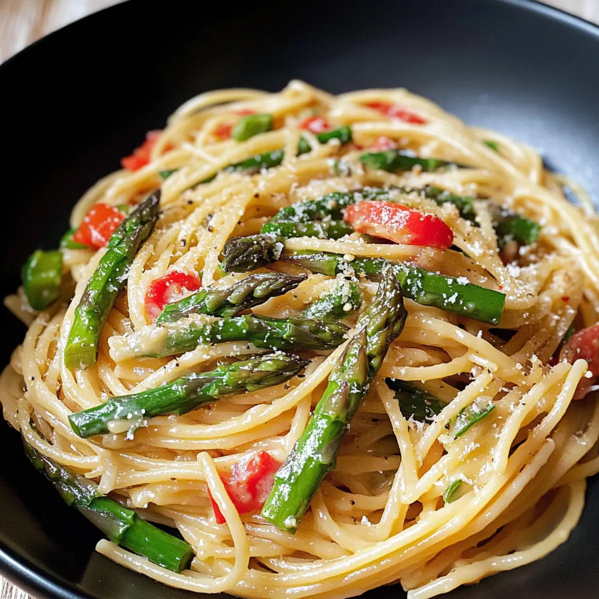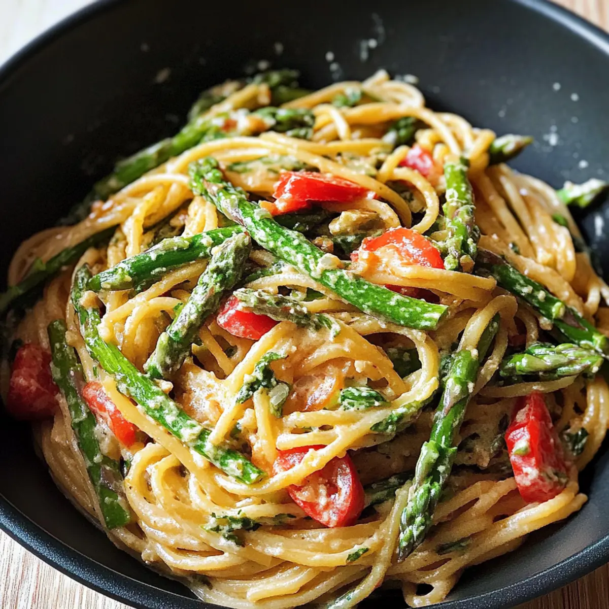 Pasta mit gebratenem grünem Spargel und Paprika