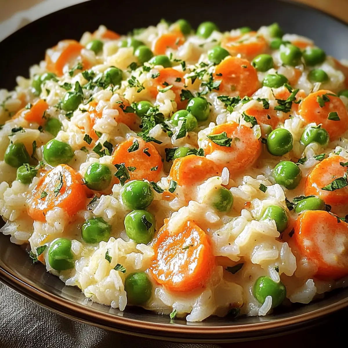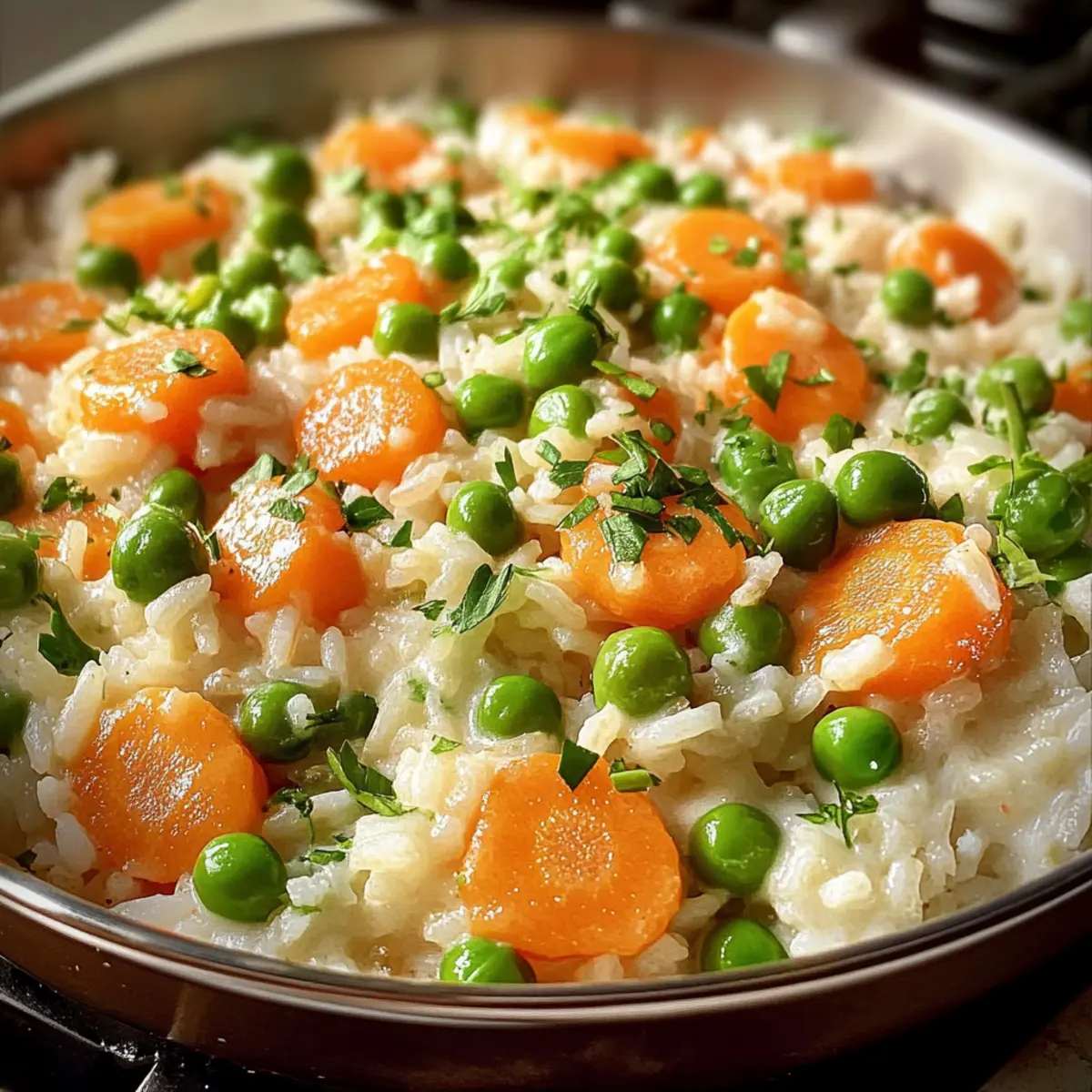 Reis mit cremigem Karotten-Erbsen-Gemüse Rezept
