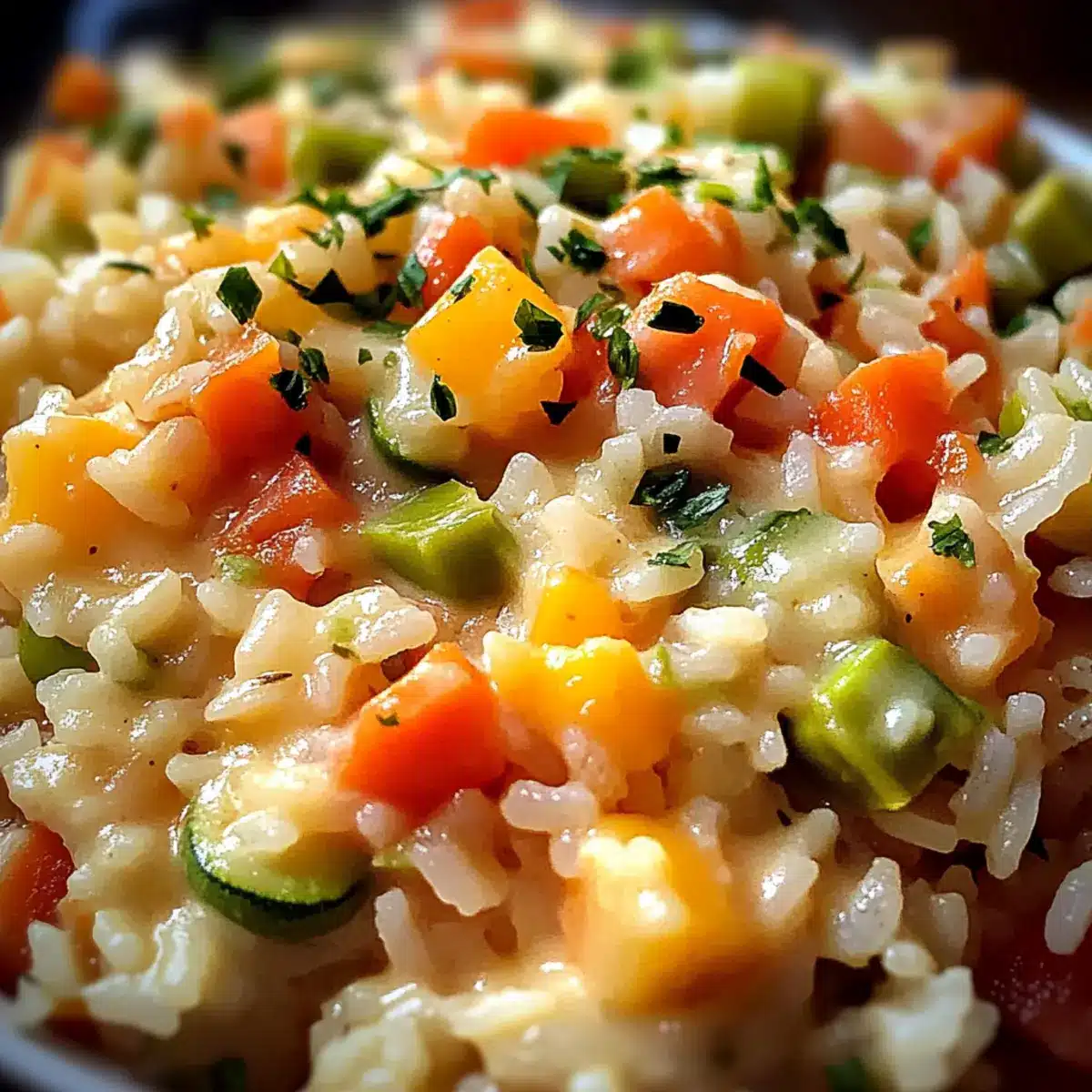 Saisonale Zutaten nutzen: Verwende saisonales Gemüse für zusätzlichen Geschmack und Nährstoffe – dies macht dein Rezept für Reis mit Gemüse & Frischkäse Sauce abwechslungsreich und frisch.
