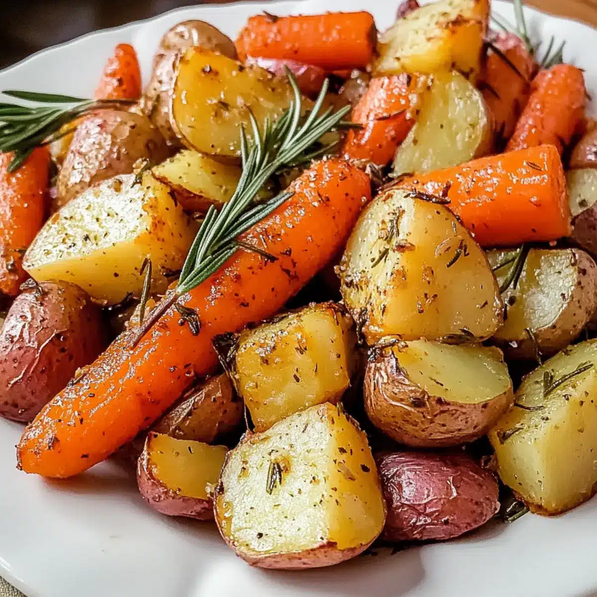 Vielseitigkeit: Kombinieren Sie die Rosmarin gerösteten Karotten und roten Kartoffeln mit gegrilltem Hähnchen oder servieren Sie sie als Teil einer Hummus-Platte – das Gericht passt zu vielen Anlässen!