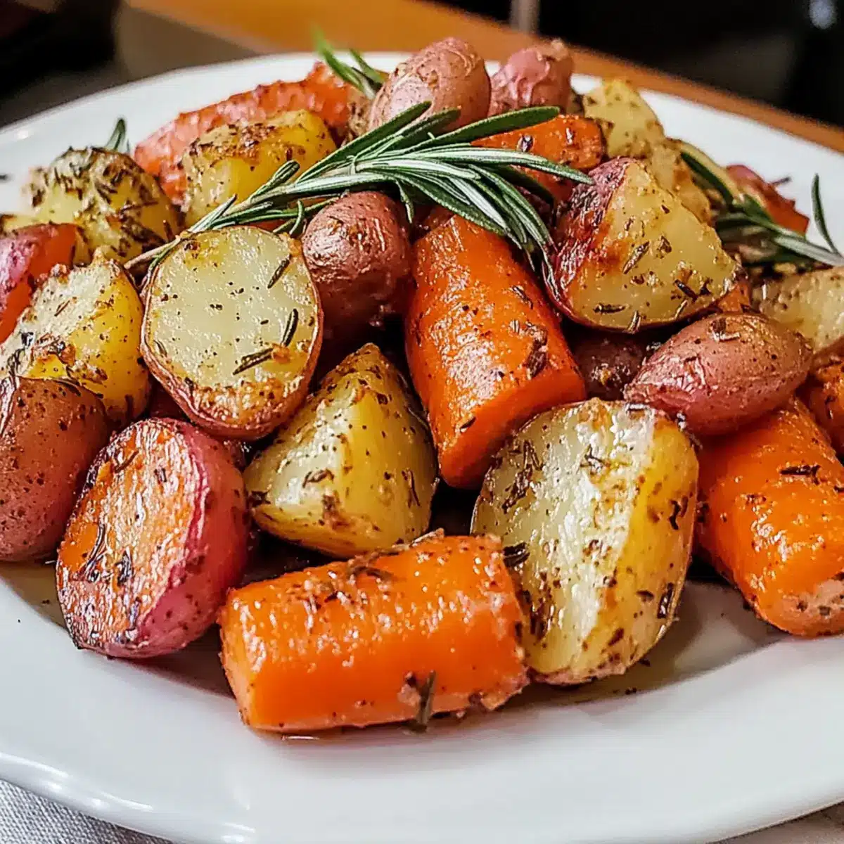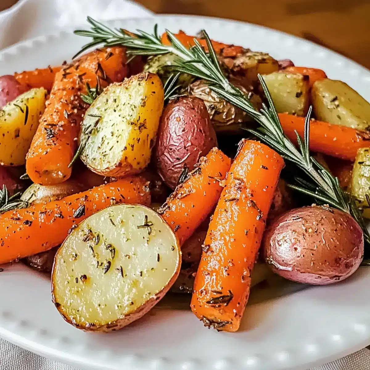 Rosmarin geröstete Karotten und rote Kartoffeln perfekt