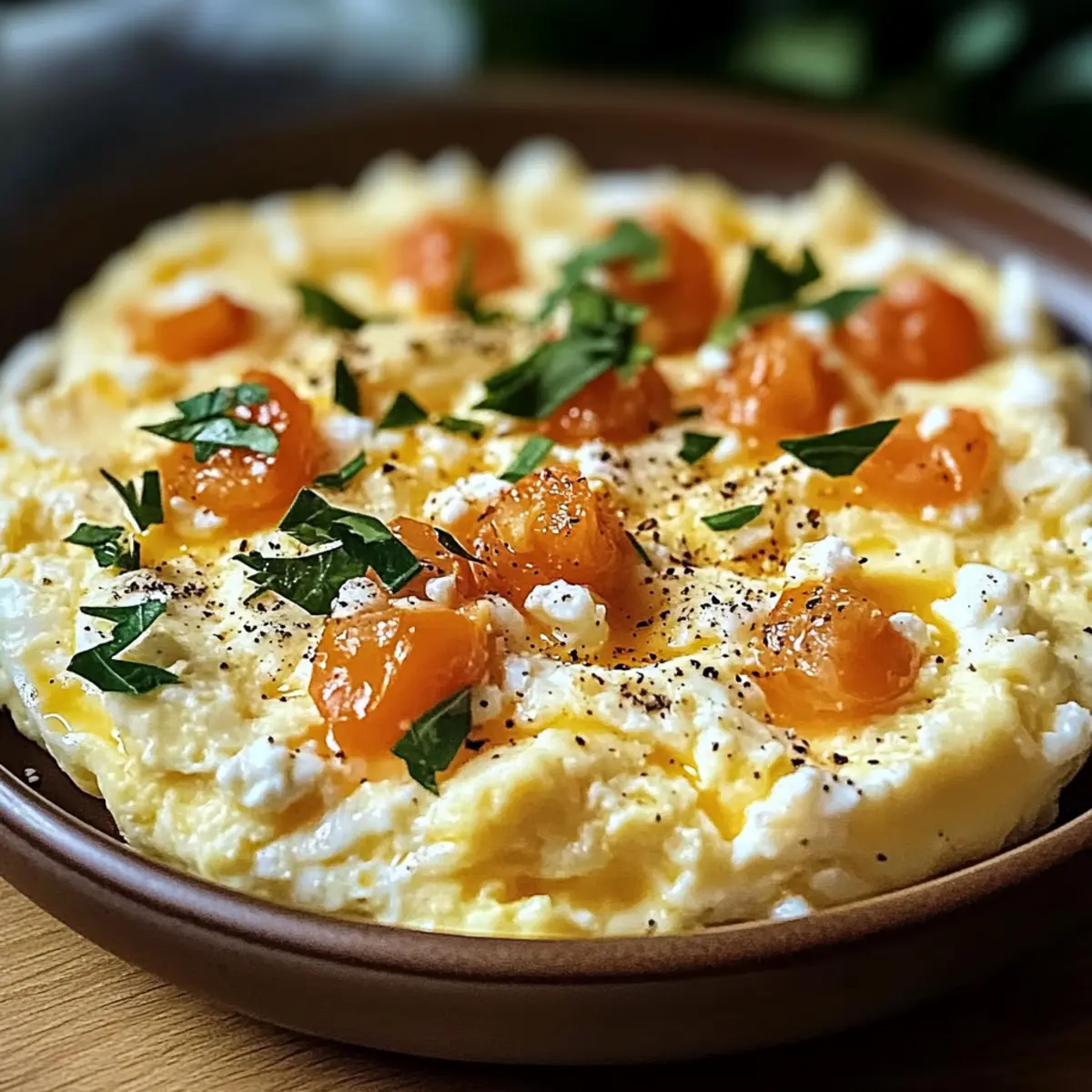 Reichhaltiger Geschmack: Die Kombination aus fluffigen Eiern und cremigem Hüttenkäse sorgt für ein unvergessliches Geschmackserlebnis – perfekt für einen energiegeladenen Start in den Tag!