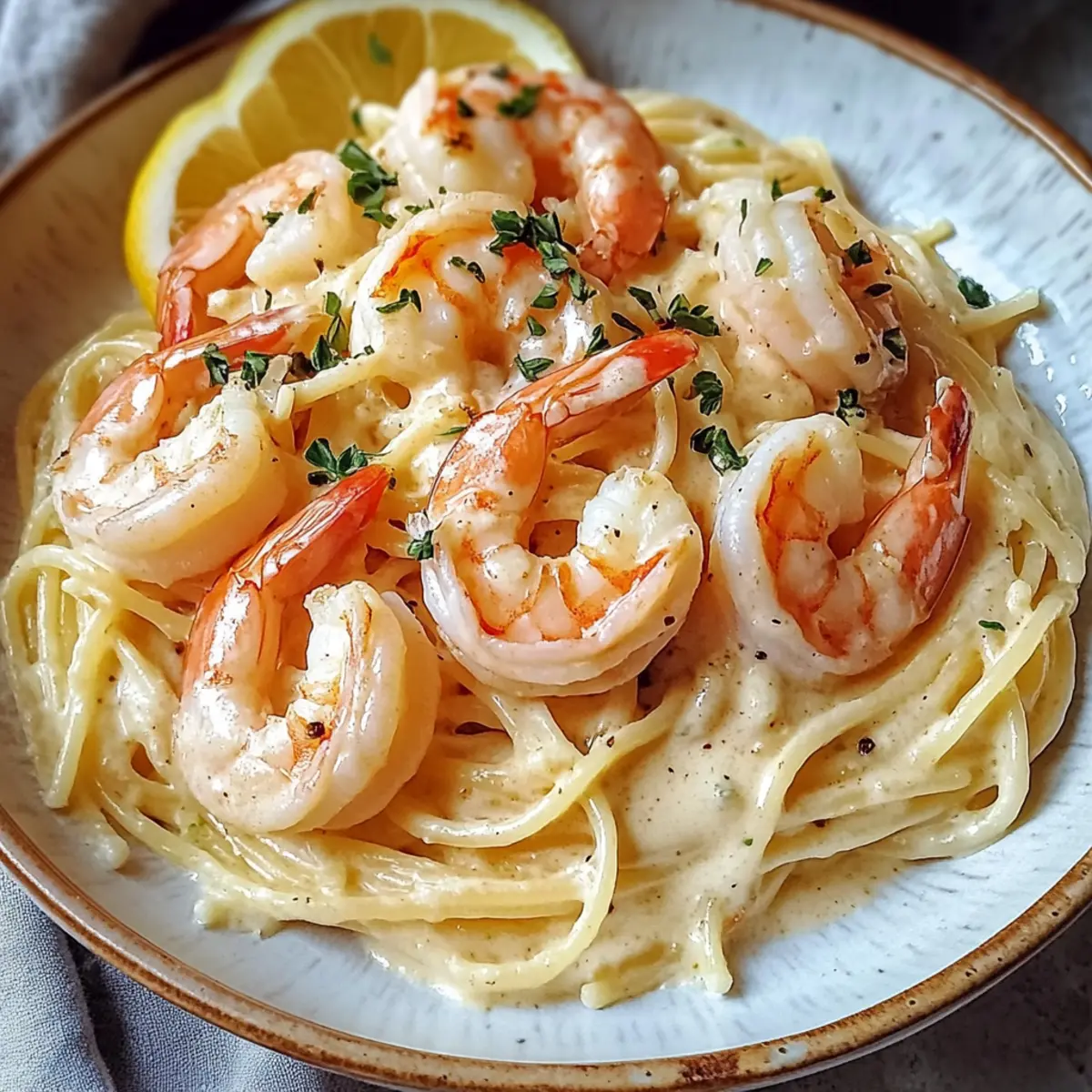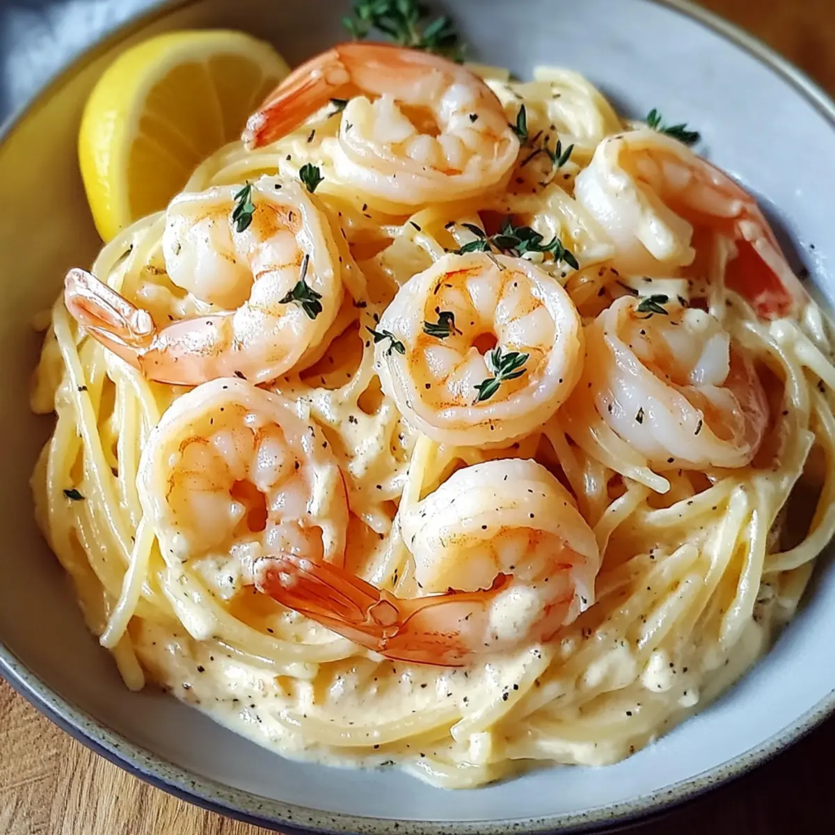 Spaghetti mit Garnelen in Frischkäsesoße genießen