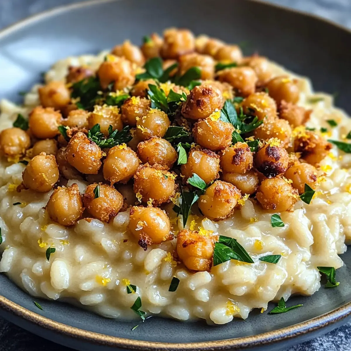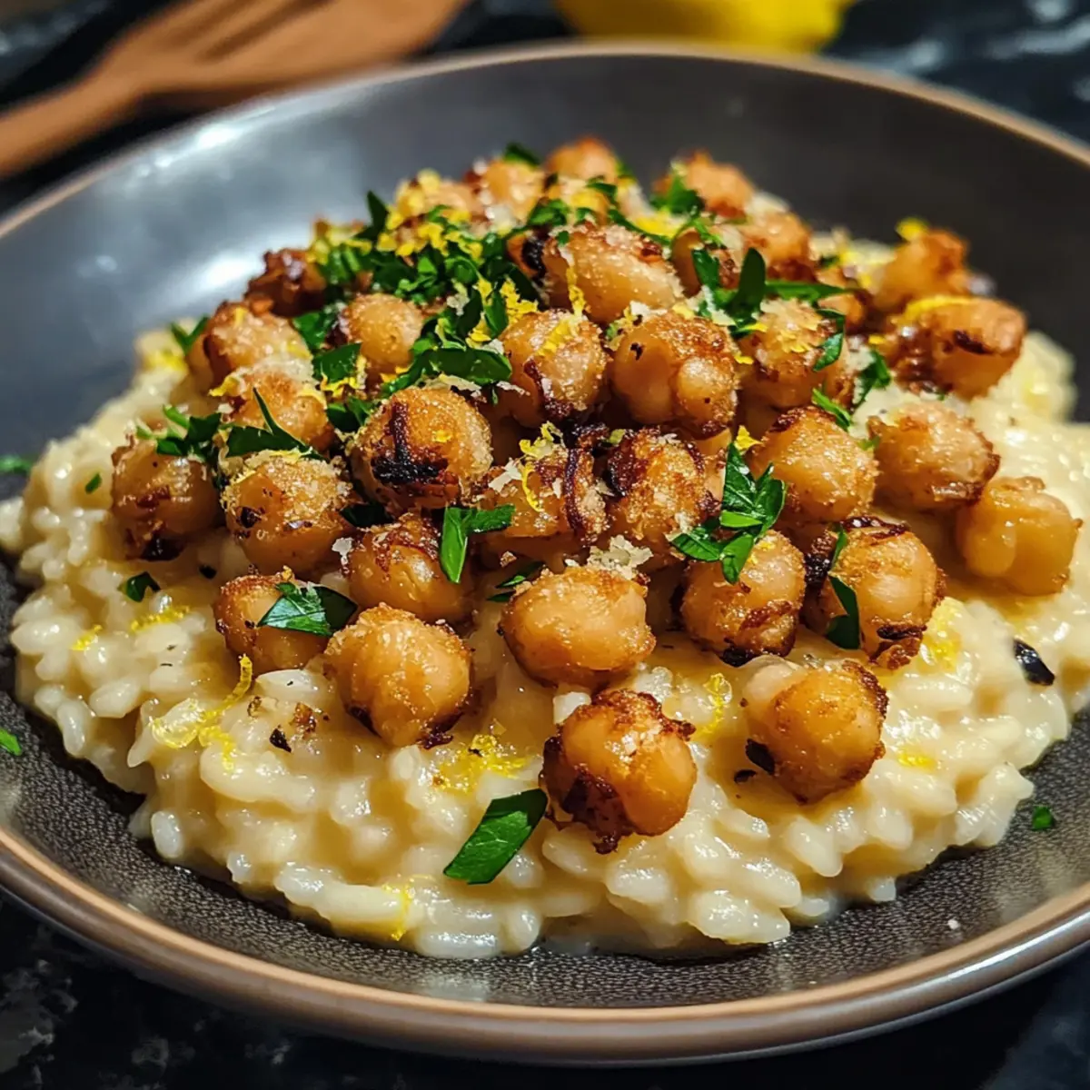 Bereite dich darauf vor, deine Geschmacksnerven zu erfreuen mit dem ultimativen Zitronenrisotto mit knusprigen Kichererbsen!