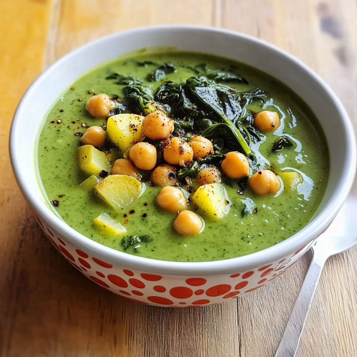 Vegan Spinat-Kartoffel-Suppe mit Kichererbsen