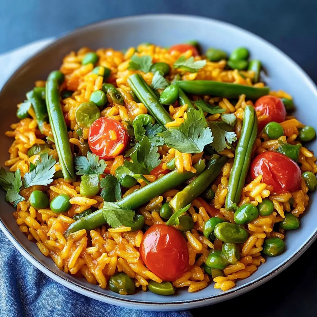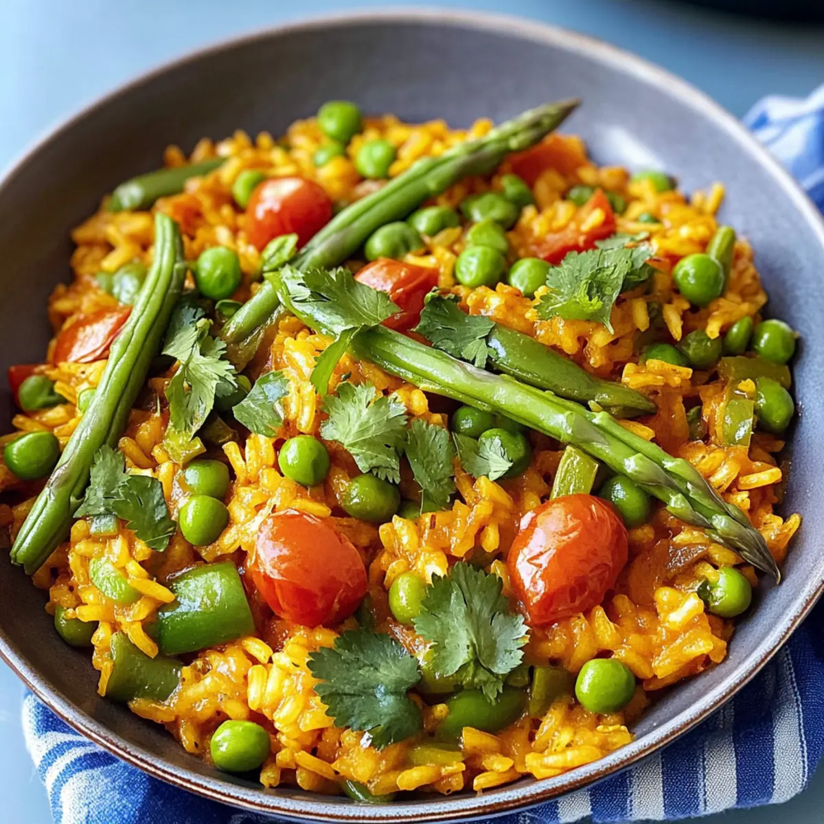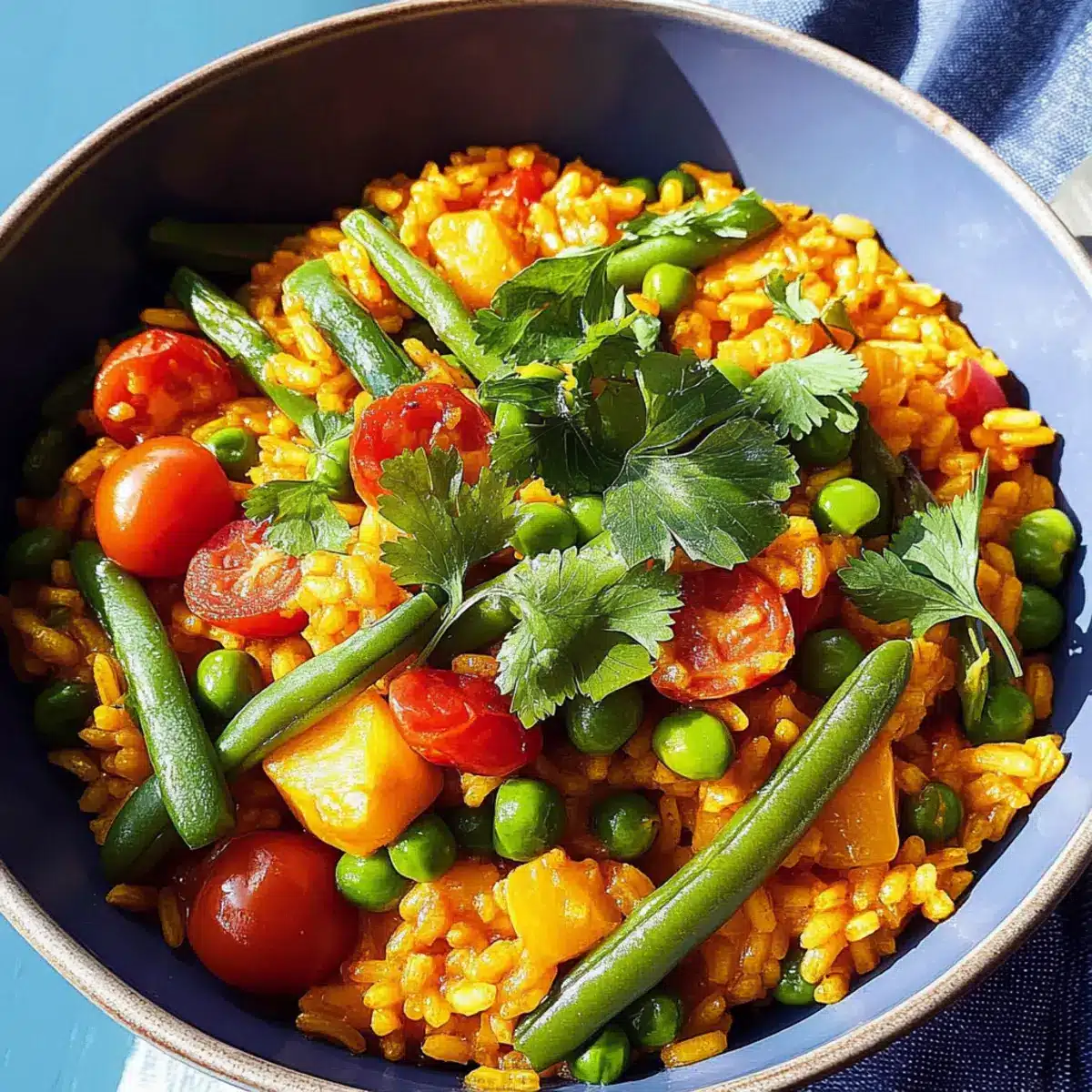 In den letzten Tagen habe ich immer wieder von einem lebendigen, farbenfrohen Gericht geträumt, das nicht nur sättigt, sondern auch unsere Geschmacksknospen zum Tanzen bringt. Die vegane Paella, gefüllt mit knackigen grünen Bohnen, zartem Spargel und süßen Zuckerschoten, ist genau das Richtige für eine schnelle und einfache Mahlzeit, die in nur 45 Minuten auf dem Tisch steht. Besonders faszinierend ist, dass dieses Gericht so viele Aromen vereint, dass selbst Nicht-Veganer begeistert sein werden. Mit ihrem harmonischen Geschmack und der robusten Textur ist diese Gemüse-Paella der perfekte Begleiter für ein geselliges Abendessen oder als komfortable Mahlzeit an einem stressigen Wochentag. Bist du bereit, deine Küche mit diesem köstlichen Rezept zu verzaubern?